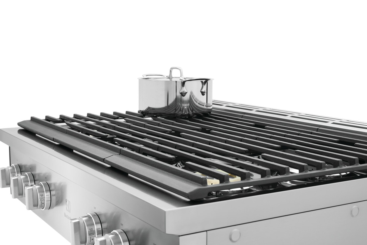 - Easily slide even your heaviest cookware from burner to burner with our continuous grates that also lend to the sleek look of the cooktop