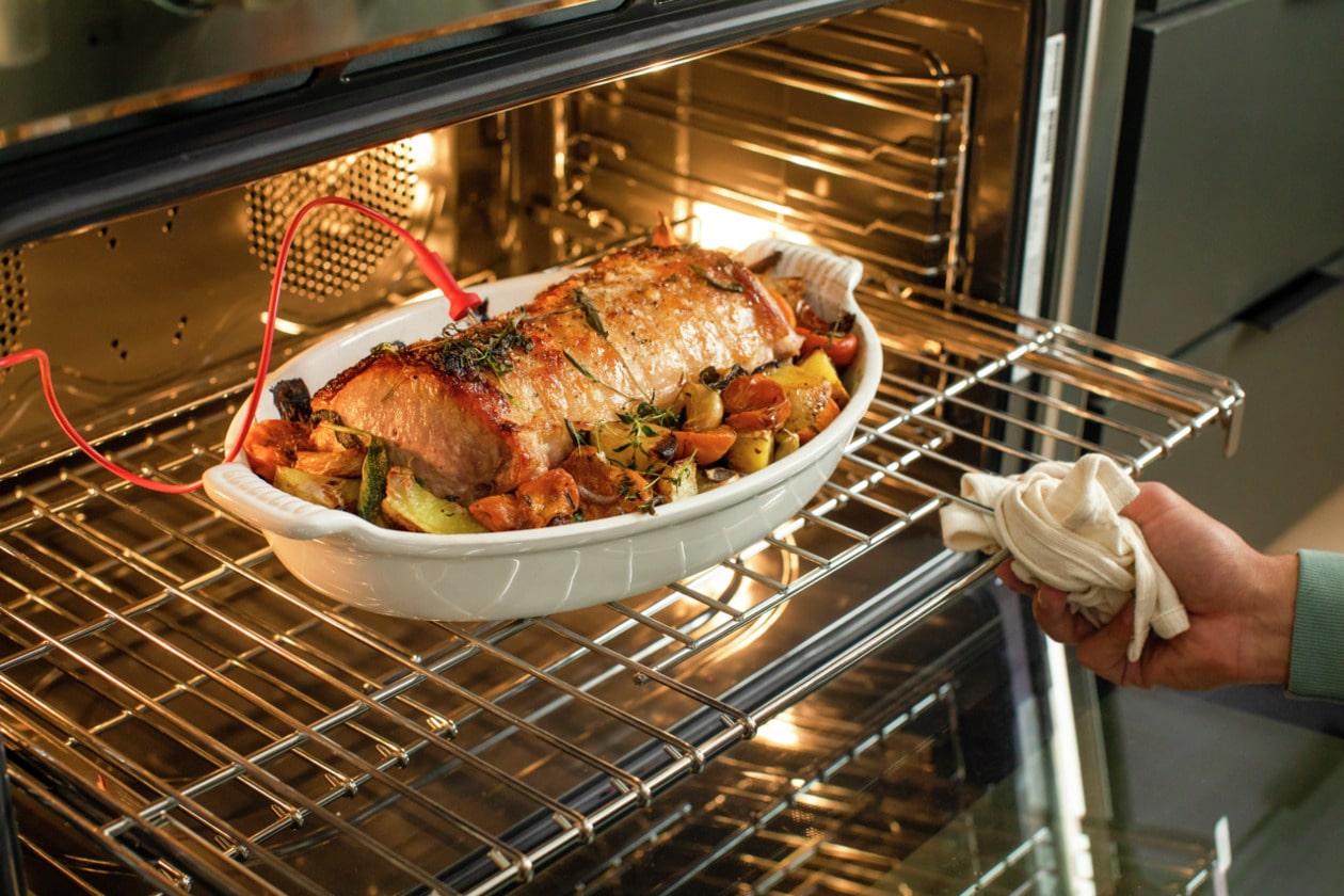 - Cook proteins to juicy perfection, never over or under cooked, with an integrated Temperature Probe which alerts you when your food has reached the desired temperature