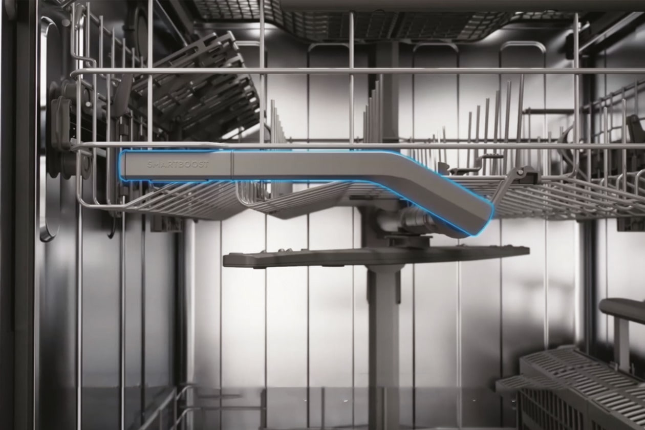 - Our patented SmartBoost™ Clean technology effectively premixes your detergent with water before reaching your dishes, delivering powerful cleaning results and helping remove tough baked on foods
