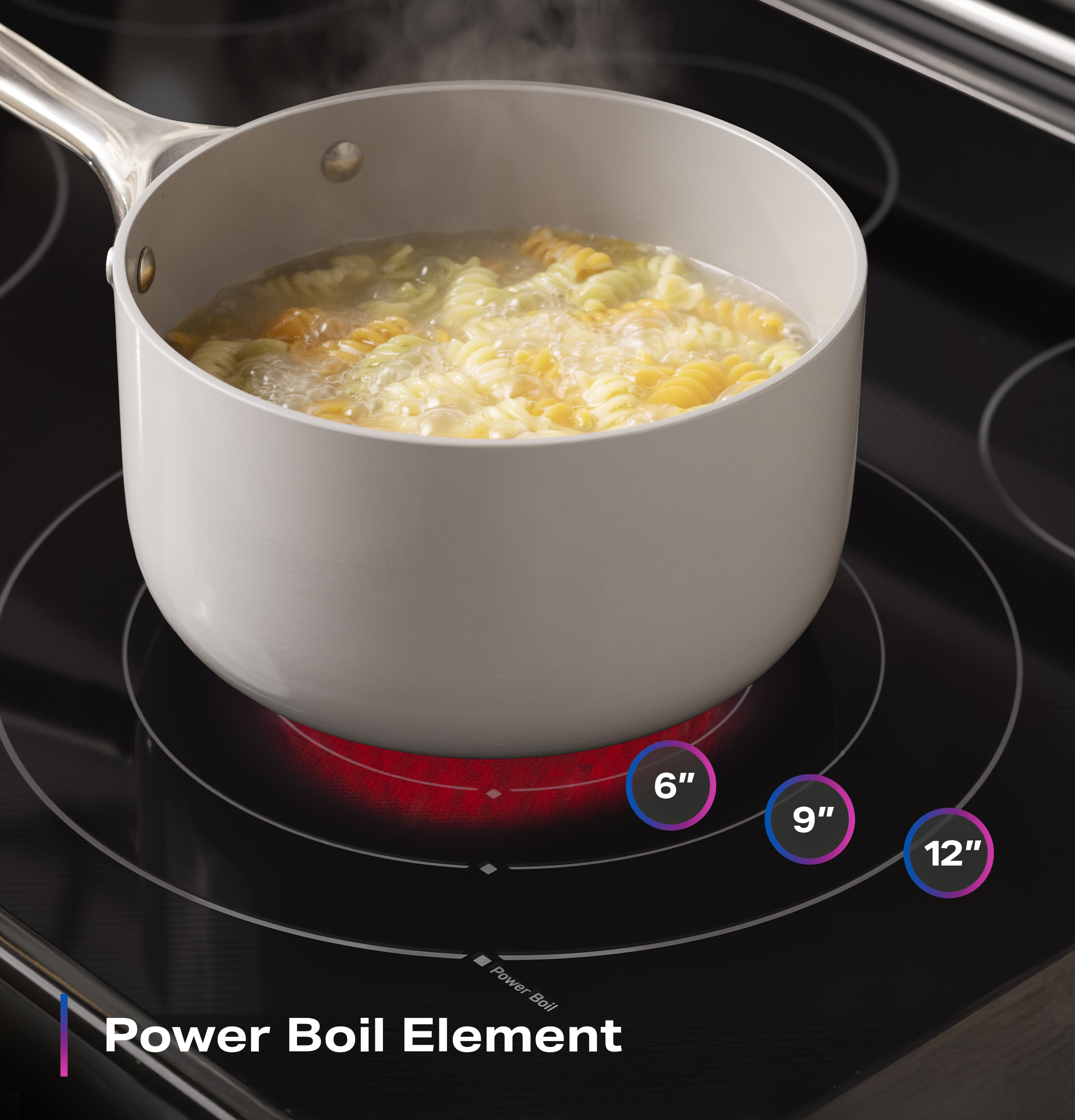 - Easily adjust to any size pot or pan with a convertible 12"/9”/6” element that makes it easy to boil water faster.