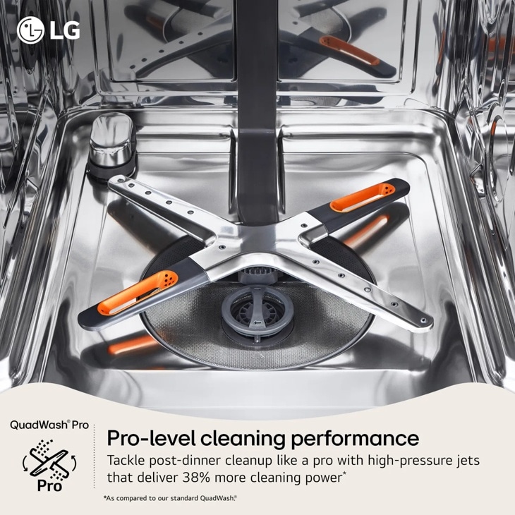 - High-pressure jets with 38% more cleaning power, as compared to our standard QuadWash®