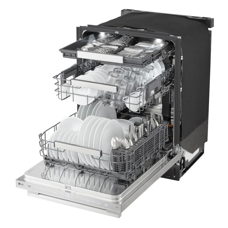 - The height-adjustable 3rd rack provides space to fit everything from long flatware to small cups