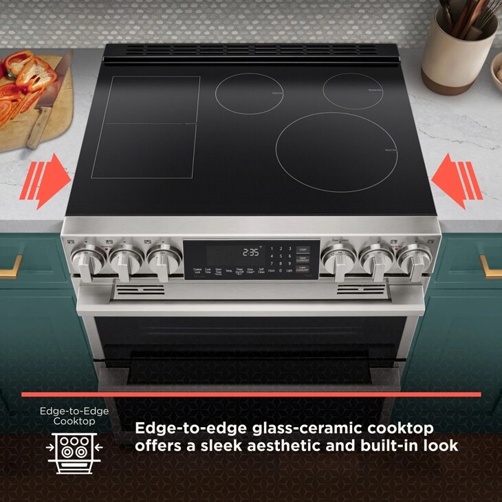 - Effortless cooking with our Edge-to-Edge Glass-Ceramic Cooktop, offering a sleek built-in look