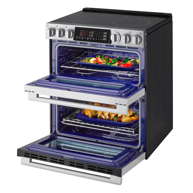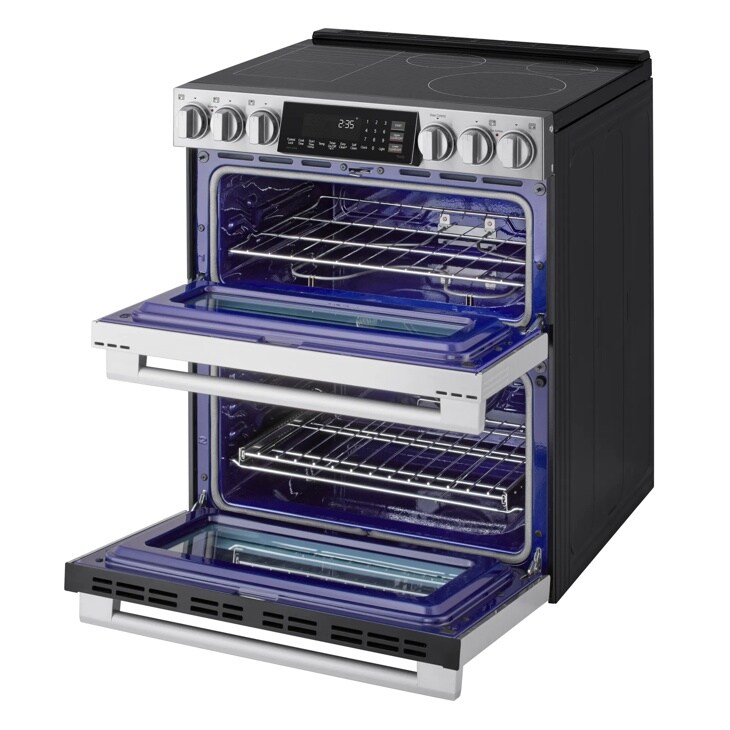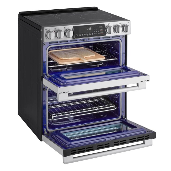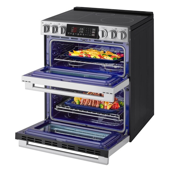 - LG's Largest Capacity Double Oven 7.3 cu. ft. Slide-In Range