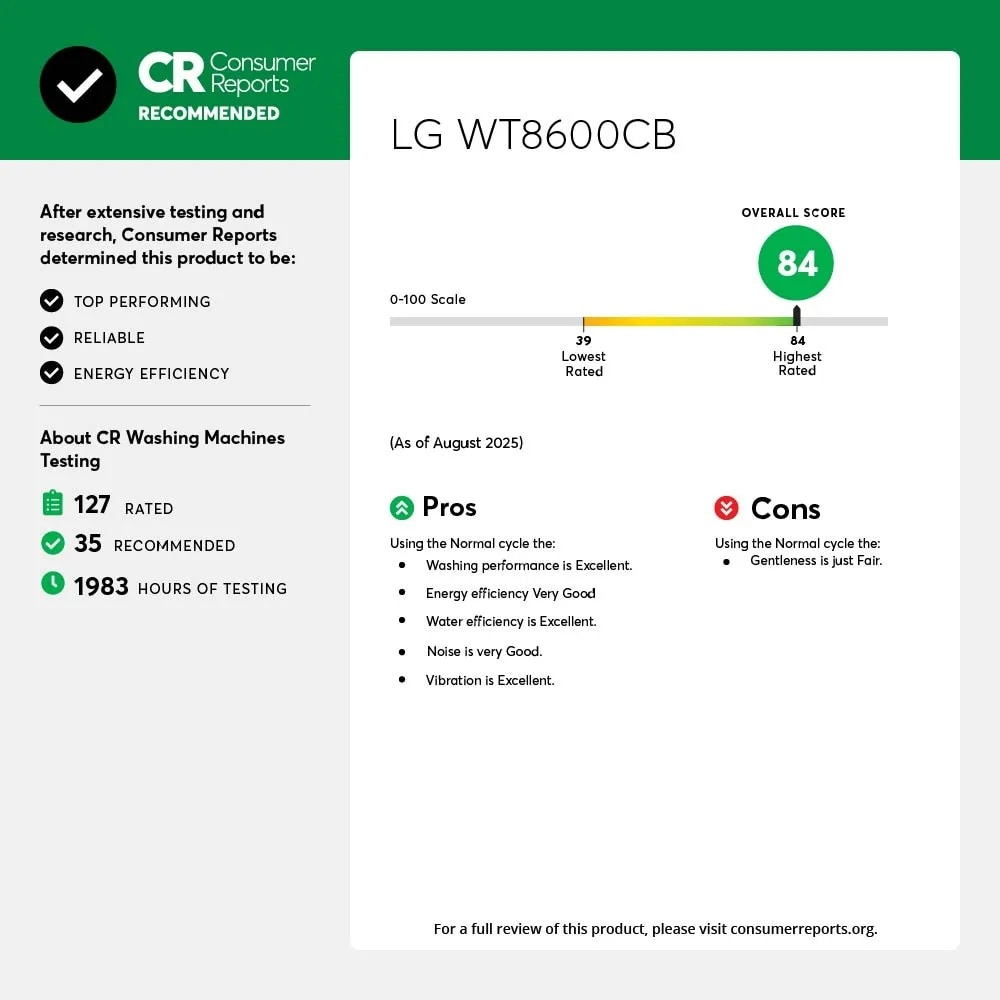 - Built-in intelligence takes out the guesswork—AI technology selects optimal wash settings