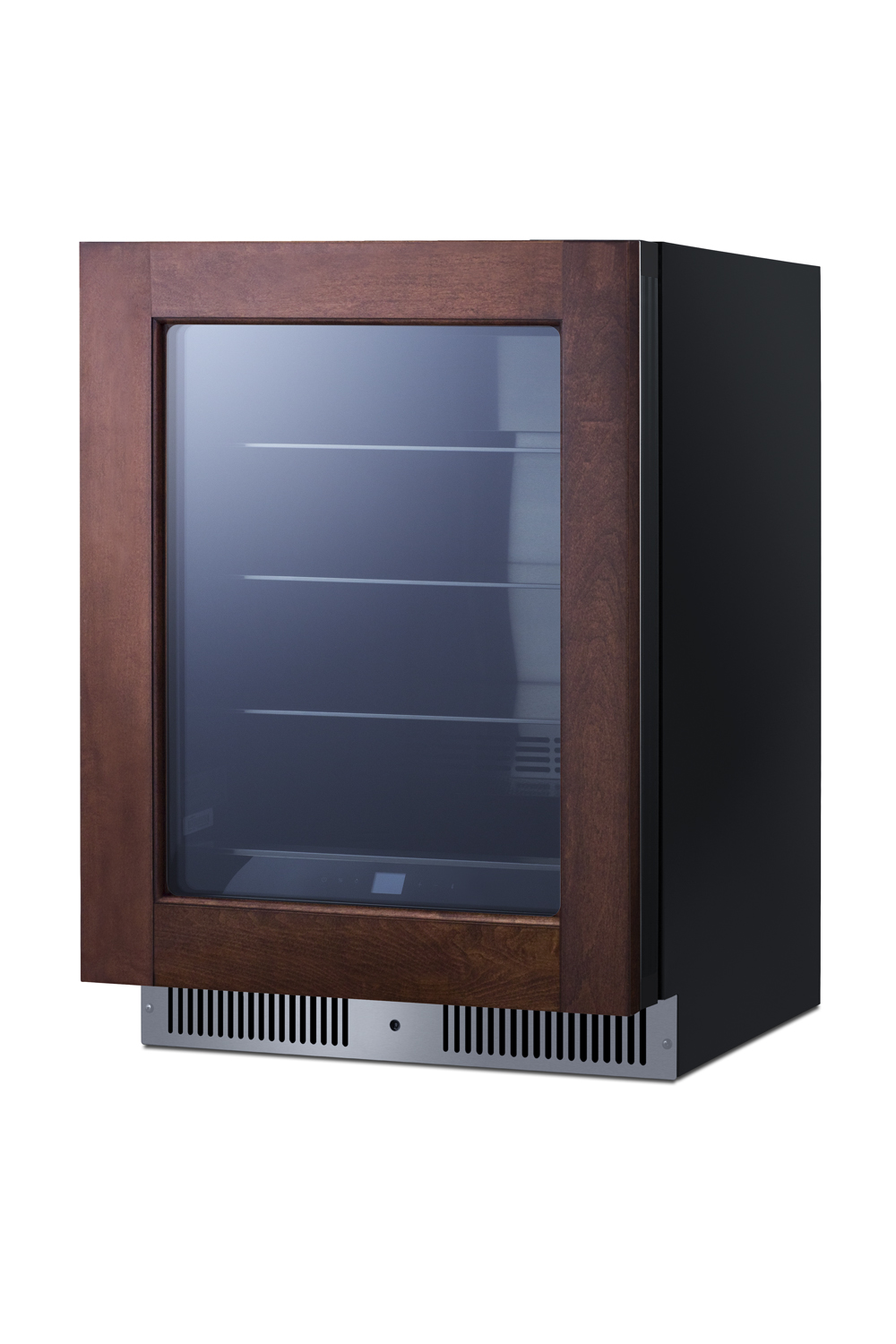 Summit's collection of premium built-in undercounter beverage centers brings full functionality, convenience, and elevated style to kitchens and home bars.Summit's CL24BV1PNRLHD is a 24" wide beverage center designed for residential or commercial use with 4.73 cu. ft. of storage space. The front-breathing system allows built-in installation, while the fully finished black cabinet also allows freestanding use. Seamless, stylish stainless steel trim blends smoothly into the double pane tempered glass door for an elevated look. This unit has a sealed rear and right-angle cord for a better fit. The fully articulating European-style hinge design ensures a smoother opening, with a 2-piece bracket kit included to allow easy installation of your own custom door trim. A lock is located in the kickplate for added convenience and security. Inside, model CL24BV1PNRLHD features a stainless steel rear wall for improved durability and sanitation. Fan-forced cooling ensures even temperature distribution and fast temperature recovery. Tri-colored LED lighting featuring amber, blue, and white options offers elegant display conditions with dimmable levels that let you create the perfect presentation. Three glass shelves ensure flexible storage to accommodate any size bottle. The interior includes an angled digital thermostat for increased accessibility, with a readout viewable in Celsius or Fahrenheit. The unit's floor features a dipped flat design to allow you to store certain beverages upright. Additional features include sabbath mode for observance periods and a temperature memory function to restore the set temperature during power loss. A built-in alarm audibly warns if the door is left ajar or if the unit rises or falls out of the recommended temperature.Uniquely styled and fully featured, the CL24BV1PNRLHD brings true convenience to kitchen or bar spaces. For this unit in a 15" width, see model CL156BV1PNRLHD. Create a matching set by pairing this with our 24" wide wine cellar,