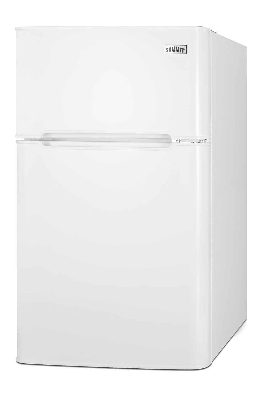 Summit's ENERGY STAR qualified collection of compact refrigerator-freezers offers uniquely sized units with energy-efficient performances.The CP34WADA is a freestanding two-door refrigerator-freezer sized at 19" wide. The cabinet is 32 5/8" high, with an additional 1/8" hinge cover for use in ADA compliant applications with lower counter height requirements. This unit features a classic white finish and reversible doors for added convenience. It has a sealed back that allows for a better fit and easier cleaning. Inside, the CP34WADA utilizes a dual evaporator system to separately cool the auto defrost refrigerator section and manual defrost freezer compartment for improved overall performance. The refrigerator includes an adjustable glass shelf for protection against spills, a large crisper drawer to keep produce fresh, and door storage for tall bottles. The "Dispense-A-Can" door compartment can hold up to six standard-sized beverage cans for convenient access. A dial thermostat with seven temperature settings make for easy temperature management, while an interior light illuminates the white interior for an easy view of stored contents. The generously sized freezer section includes a large door shelf for easy storage. An ice scraper and ice cube tray are also included.The CP34WADA is ENERGY STAR qualified with an efficient performance designed to save on utility costs and energy usage. With its unique size and quality design, this unit is ideal for college dorms, small apartments, offices, and other settings in need of a reliable, energy-efficient compact refrigerator-freezer. For this unit in stainless steel, see the CP34BSSADA.