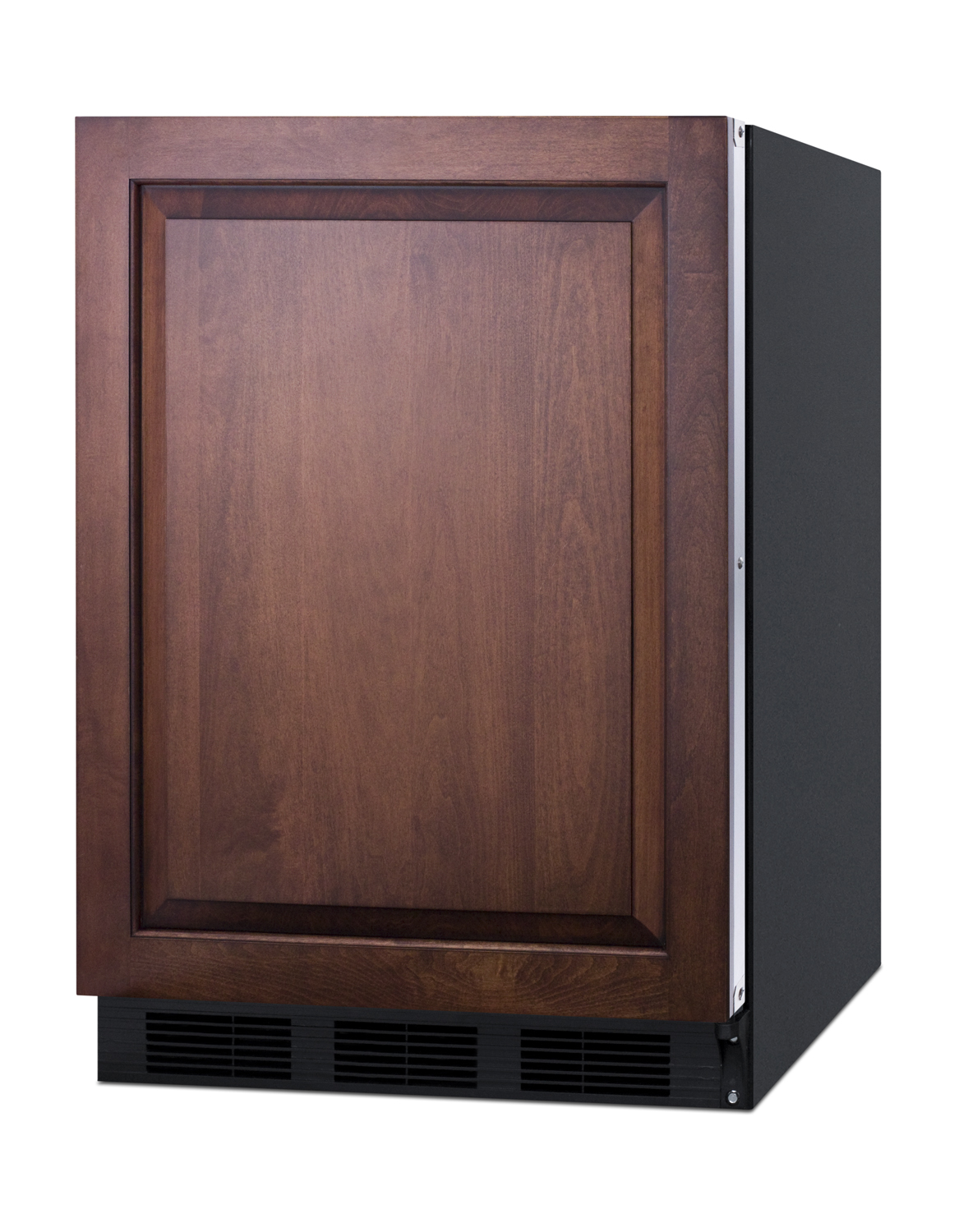 Summit's Peak24 series of undercounter European-made refrigeration features energy efficient, ADA height choices that offer the largest capacity in the industry for recessed installation in 24" openings.Sized with a 24” footprint, the ENERGY STAR certified CT663BKIFrefrigerator-freezer offer a generous 5 cu.ft. storage capacity, larger than many units in this size class. This unit comes in a black exterior finish. The integrated stainless steel door frame is designed to accept overlay panels (sized 23 5/16" W x 28 1/4" H), allowing you to customize the front to seamlessly match your own cabinetry style. Customers provide their own handle.Inside, the CT663BKIF features a dual evaporator to allow separated cooling of the fresh and frozen food sections. The refrigerated compartment utilizes low maintenance automatic defrost, while the interior freezer compartment is manual defrost to achieve lower storage temperatures ideal for ice cream and other frozen food. The deluxe interior includes adjustable glass shelves for spill-proof storage and easier cleaning, as well as a scalloped wine shelf to hold wine and champagne bottles safely in place. Door racks offer additional convenience for tall bottles and condiments and a clear crisper drawer ensures your produce is stored under the ideal conditions. This model includes automatic interior lighting and an adjustable dial thermostat.The CT663BKIF is UL listed for residential use. With its large capacity and user-friendly features, this unit is a convenient option for homes, offices, schools, and other settings in need of reliable cold storage. Additional choices are available in ADA compliant height. Browse the full Summit catalog to discover the perfect appliance for your refrigeration needs.
