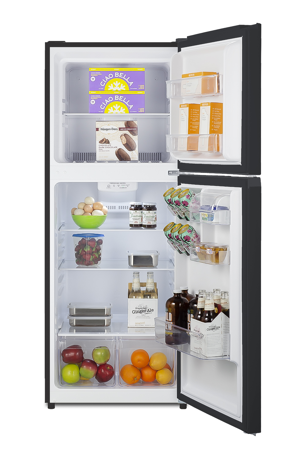 Summit Appliance manufactures one of the industry's most extensive lines of frost-free refrigerator-freezers in unique footprints for apartments and smaller kitchens.The ENERGY STAR certified FF1087B offers over 10 cu.ft. of storage capacity in a slim fit under 24" wide and 60" high. The design meets ADA guidelines for user accessibility. This unit comes in a clean white finish with a user-reversible door swing to accommodate any space. The rear is sealed with no exposed coils for a better fit and easier cleanup.Inside, the FF1087B comes fully featured for convenient storage. The refrigerator section includes adjustable spill-proof glass shelves and two clear crispers with humidity slides for optimum produce storage. Door storage includes a large rack sized to hold gallon containers, removable half rack, covered butter rack, and two can racks to keep jars and other round containers in place. The fresh food section features intuitive touch controls and an automatic interior light. The large freezer compartment includes its own dial thermostat, two door shelves, and an adjustable glass shelf. Conveniently featured and perfectly sized, the FF1087B is the ideal choice for apartments and other smaller kitchens looking for an energy efficient refrigerator-freezer. Additional choices are available in white (FF1088W) and with a stainless steel look (FF1089PL).