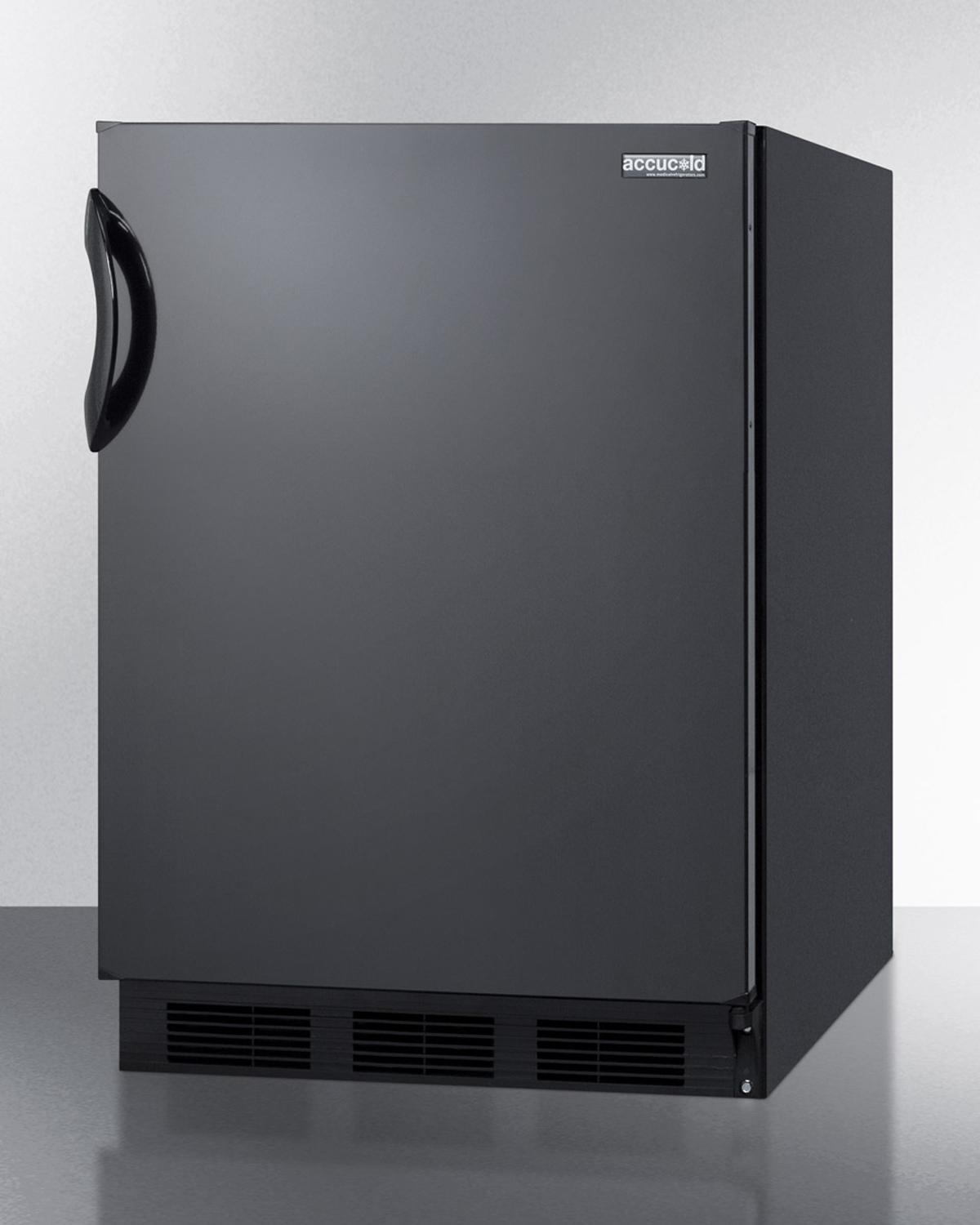 Accucold by Summit Appliance offers a wide range of all-refrigerators for general purpose storage. The commercially listed FF6BI7ADA Series features 24" wide all-refrigerators designed for built-in undercounter use in ADA compliant settings.The FF6BKBI7ADA is a 32" high all-refrigerator with a full 5.5 cu.ft. capacity inside a slim 24" footprint. The front-breathing design allows built-in use under counters, while the fully finished cabinet also lets this unit be used freestanding. This model has a black exterior and user-reversible door swing.Inside, the FF6BKBI7ADA utilizes low maintenance automatic defrost operation. Our unique "hidden" evaporator is set behind the rear wall to create a seamless, easy-to-clean interior. Adjustable glass shelves allow users to reconfigure the interior for optimum storage. Additional features include automatic interior lighting, door storage, and a crisper drawer. This unit includes an adjustable dial thermostat.The FF6BKBI7ADA is ETL-S listed to NSF-7 standards for use in commercial establishments. For more finish options, browse the entire FF6BI7ADA Series.NOTE: This unit is designed for general purpose or commercial applications and does not meet DOE energy standards for residential use.