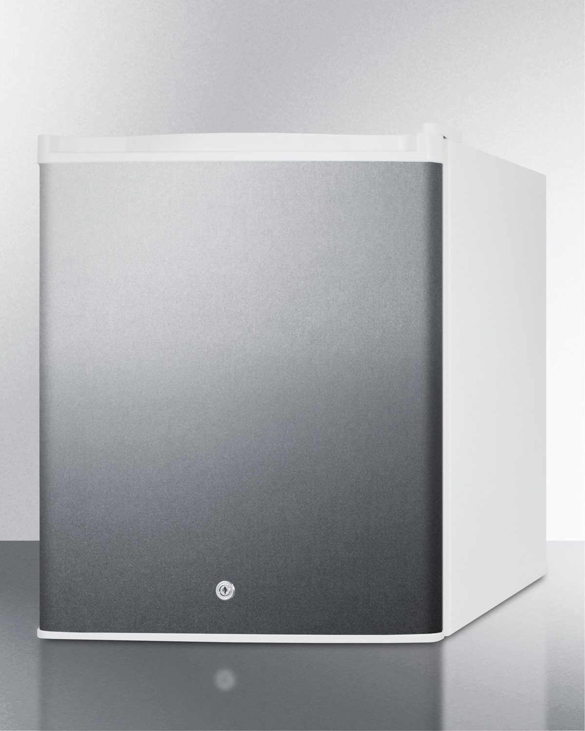 SUMMIT COMMERCIAL offers a quality line of compact refrigeration designed and constructed for reliable use in commercial applications.The FFAR25L7SS is a compact all-refrigerator designed to meet UL-471 electrical standards. It comes with a white cabinet and reversible stainless steel door. A factory installed front lock offers keyed security, while the rear features a sealed metal cover for improved sanitation.Inside, the FFAR25L7SS utilizes automatic defrost operation for low maintenance use. Two removable chrome shelves offer convenient storage, while the flat door liner allows you to store deeper items. The digital thermostat is located inside and can be managed in Celsius or Fahrenheit. Interior LED lighting offers an attractive, energy efficient view of the interior in a soft blue hue. With its ideal dimensions and user-friendly features, the FFAR25L7SS offers added convenience to the usual compact refrigerator.