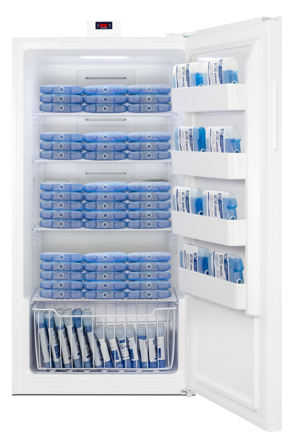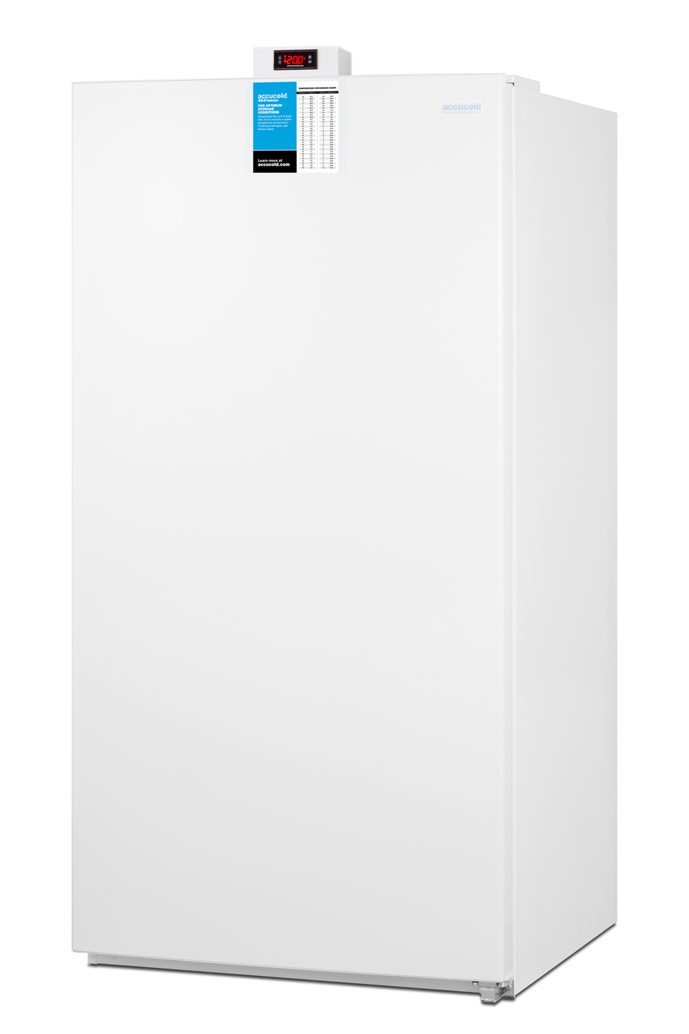 Accucold's general purpose series offers reliable cold storage in a variety of designs, including full-sized freezers with frost-free operation for low maintenance use.Model FFUF194 is an upright all-freezer with a full 17 cu.ft. storage capacity. It comes in a white exterior finish with a right hand door swing and powerful seal to ensure items are protected. This unit has a sealed back for easier cleanup and a right angle cord to allow a better fit. The digital control panel is located on top of the cabinet, allowing you to manage the interior temperature without opening the door. The FFUF194 is designed to operate between -25 to -10ºC. For a matching all-refrigerator, see the FFUR19.The FFUF194 utilizes frost-free operation, eliminating the need to manually defrost the interior. Adjustable wire shelves accommodate a variety of sizes, with a removable lower basket for additional storage. Four door racks are included. This unit features LED lighting for an efficient view.With its low maintenance design and large storage capacity, the FFUF194 is ideal for storing non-critical products in research, clinical, and industrial laboratory applications.NOTE: This unit is intended for use in healthcare, medical, life science, and laboratory settings, and is not intended for residential use.