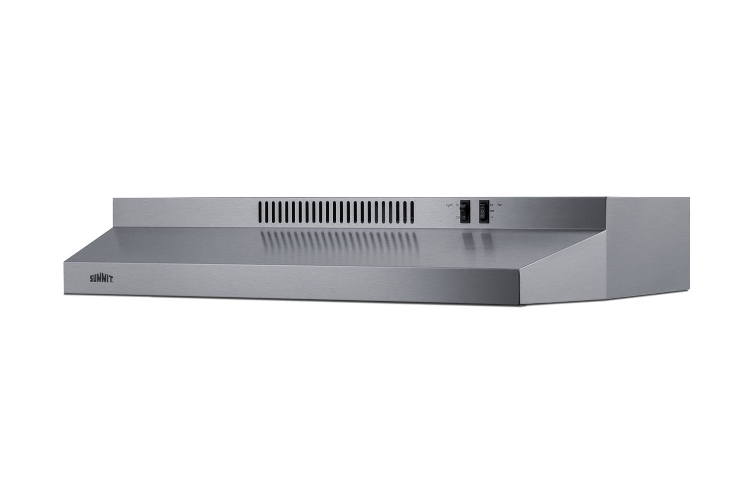 Summit's under cabinet convertible range hoods offer versatile ventilation solutions for every kitchen space.Model H30RSS is a 30" wide range hood ideal for apartments and other smaller kitchens. It features an attractive stainless steel finish with a horizontal grain. We include a pre-installed light bulb to illuminate your cooking surface. The 2-speed fan is easily managed by a rocker switch with a high and low ventilation setting. This hood is convertible for horizontal or vertical ducted ventilation or ductless/recirculating ventilation where no exhaust connection to the outside is available. It ships ready for standard 3 1/4" x 10" rectangular ducting, but it can be used with a round 6" or 7" duct with the addition of a transition (not included). We include a metal mesh filter to catch grease and a charcoal filter to absorb smoke and odors when using in recirculating applications. This unit does not include a power cord and is designed to be hard-wired by a licensed professional. Additional convertible range hoods are available in 18", 20", 24", and 36" sizes, with more styles and choices coming soon. We also manufacture an extensive selection of 30" wide ranges and cooktops, providing complete kitchen solutions at incredible value. Browse the full Summit product line to explore your options.