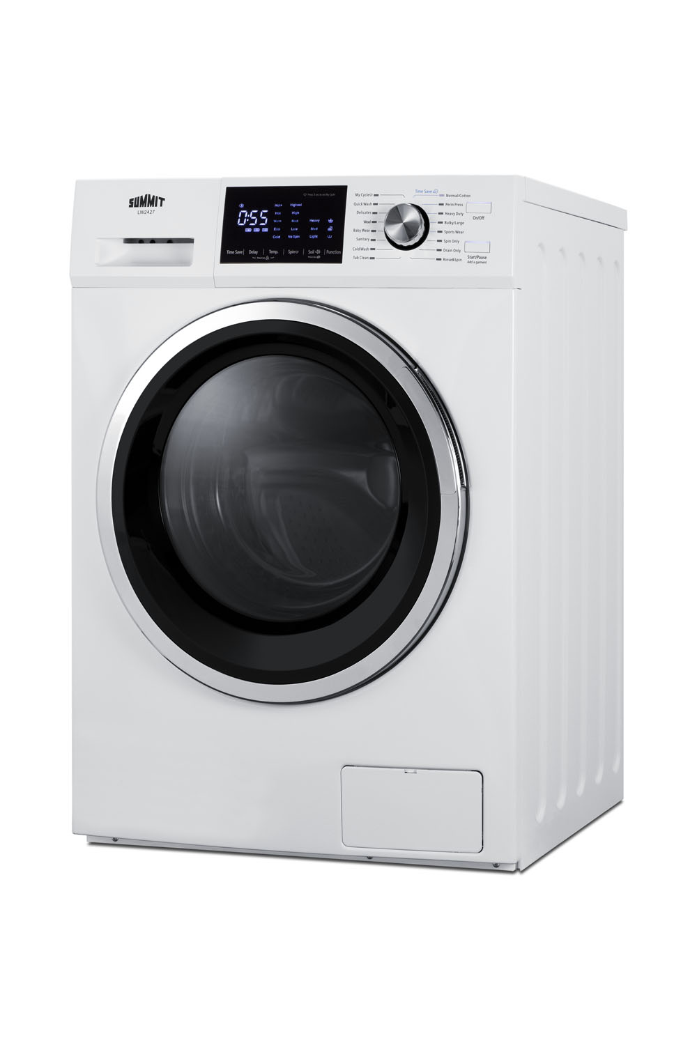 Summit's selection of slim-fitting laundry options brings efficiency and convenience to apartments, tiny houses, and other homes with limited floor space. The ENERGY STAR certified LW2427 is a 115V front-loading washer with a generous 2.7 cu.ft./26.4 lb. wash capacity in a slim 24 inch fit. It comes in a clean white finish with a ridged stainless steel interior tub to ensure a thorough wash with lasting durability. The wide glass door ensures convenient loading. This unit includes a pre-installed 3-prong cord. For added space savings in small homes, this washer can be placed in closets or alcoves for recessed installation (minimum clearance: 1" on each side, 2" at the top, rear, and front). The LW2427 uses a combination of dial and digital controls for easy and intuitive use with a large LED readout to keep track of your progress. Choose from 15 wash programs including cottons, heavy duty, permanent press for wrinkle reduction, sportswear, sanitary, babywear, delicates, wool, and more. A tub clean setting lets you run a high temperature wash cycle to help sterilize the interior and remove any residue left from previous washes. Additional features include a child lock, 24 hour delay start, and add garment function. The pull-out detergent compartment makes it easy to load.This washer can be paired with the matching 220V LD2444 heat pump dryer to create a complete set. A stacking kit with a slide-out rack will be available later this summer. Additional laundry options are available, including all-in-one 115V combination washer/dryers. Browse the complete Summit line to explore your options.