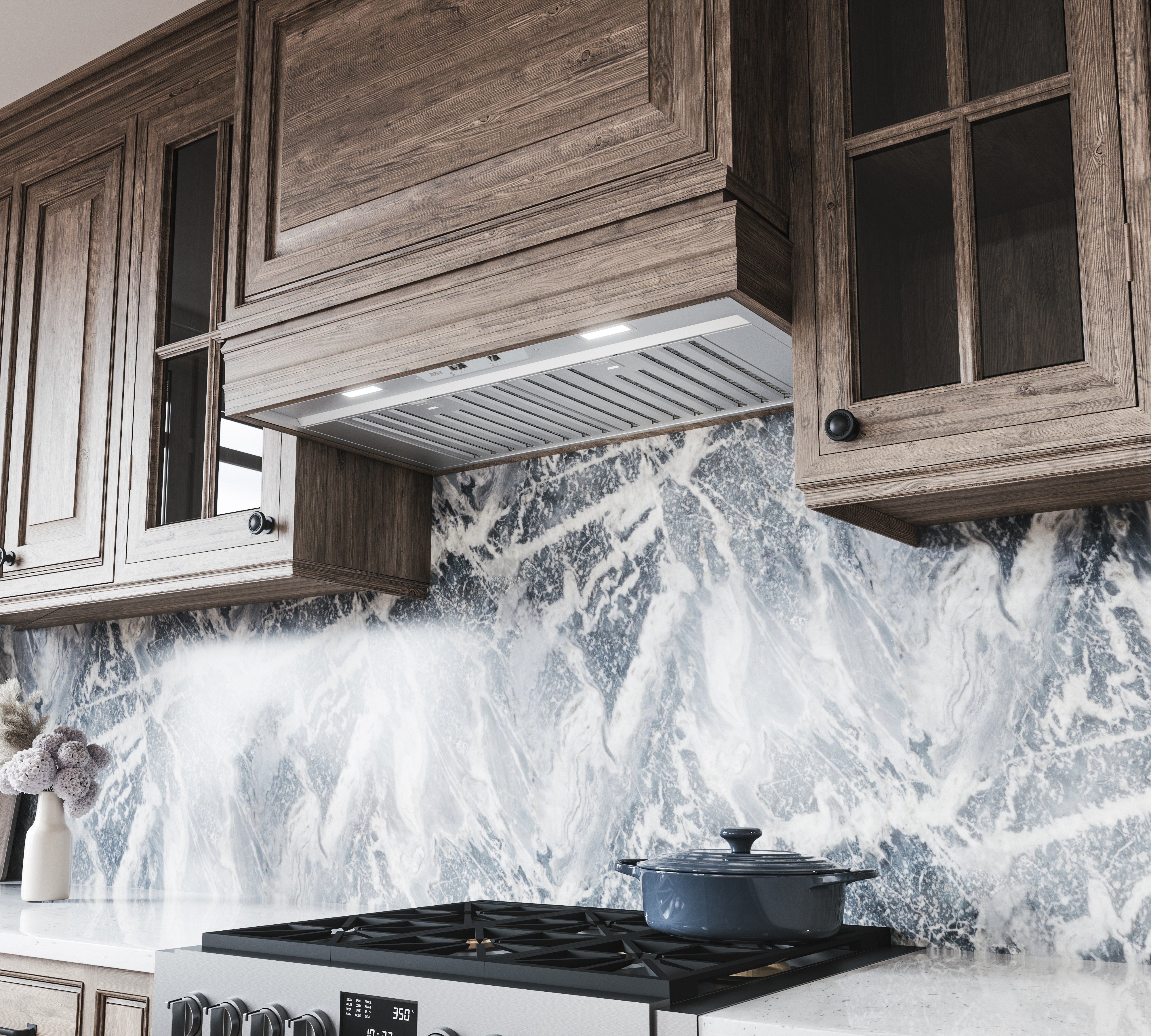 Good things come in small packages, and in this case, it’s the Monsoon Mini one-piece liner. Includes dual-level LumiLight LED lighting, 3-speed mechanical slide controls, and hybrid baffle filters. Equipped with a 300-CFM blower and the ability to duct either vertically or horizontally.