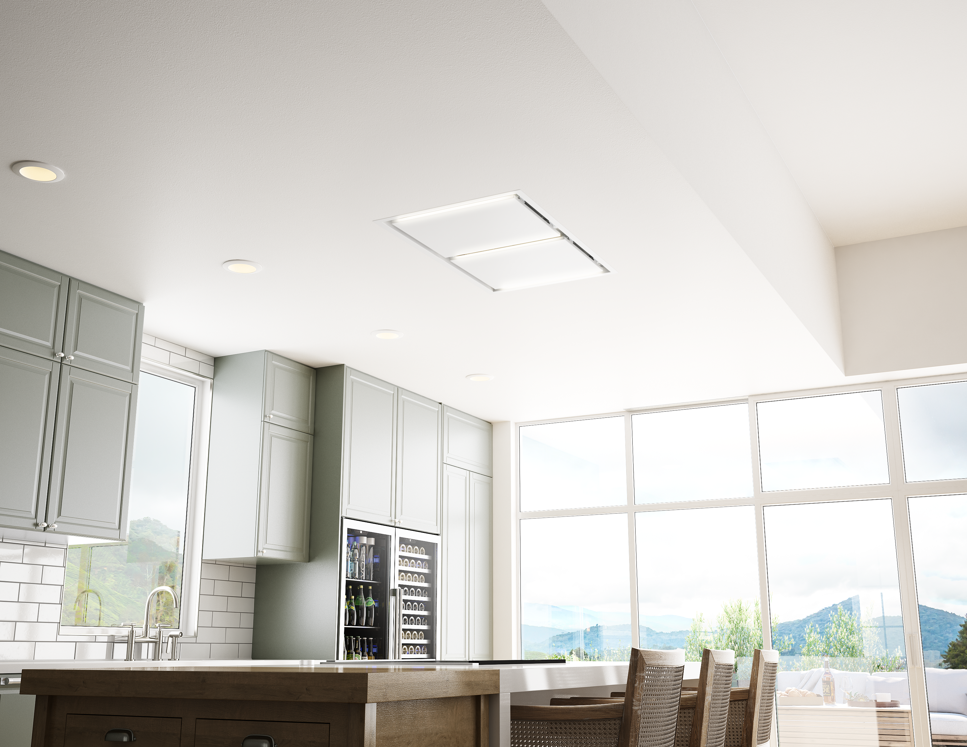 Enjoy unobstructed views of your kitchen with the modern, minimalist lines of the Lux Connect Island. This sleek hood features Zephyr Connect, giving you the ability to control it from anywhere — including your smart speaker — and it discreetly mounts into the ceiling above your cooking surface. Your kitchen will stay clean and smoke free with the Perimeter Aspiration System and multiple blower options, and the tri-level BriteStrip™ LED lighting ensures a good-looking glow. Available in white and stainless steel.