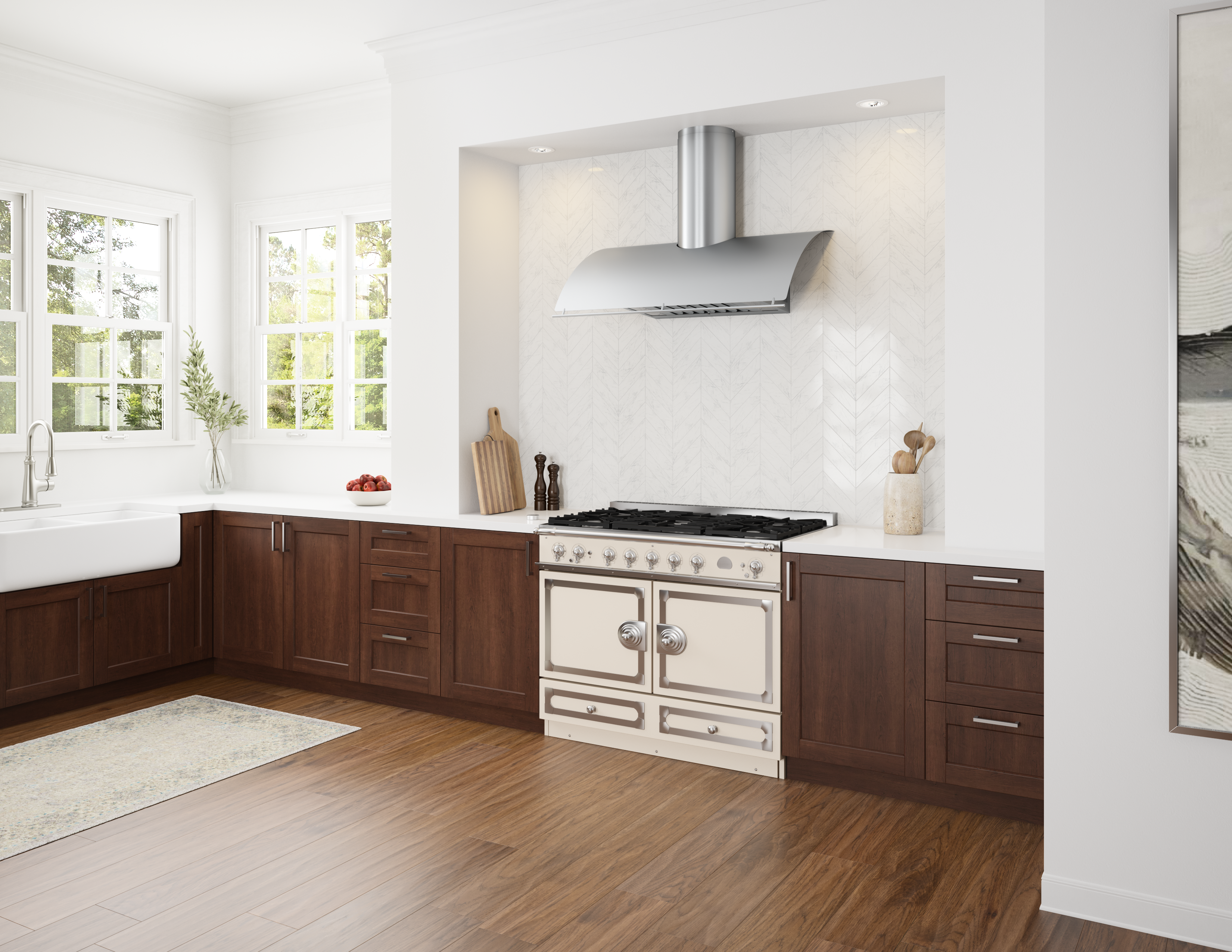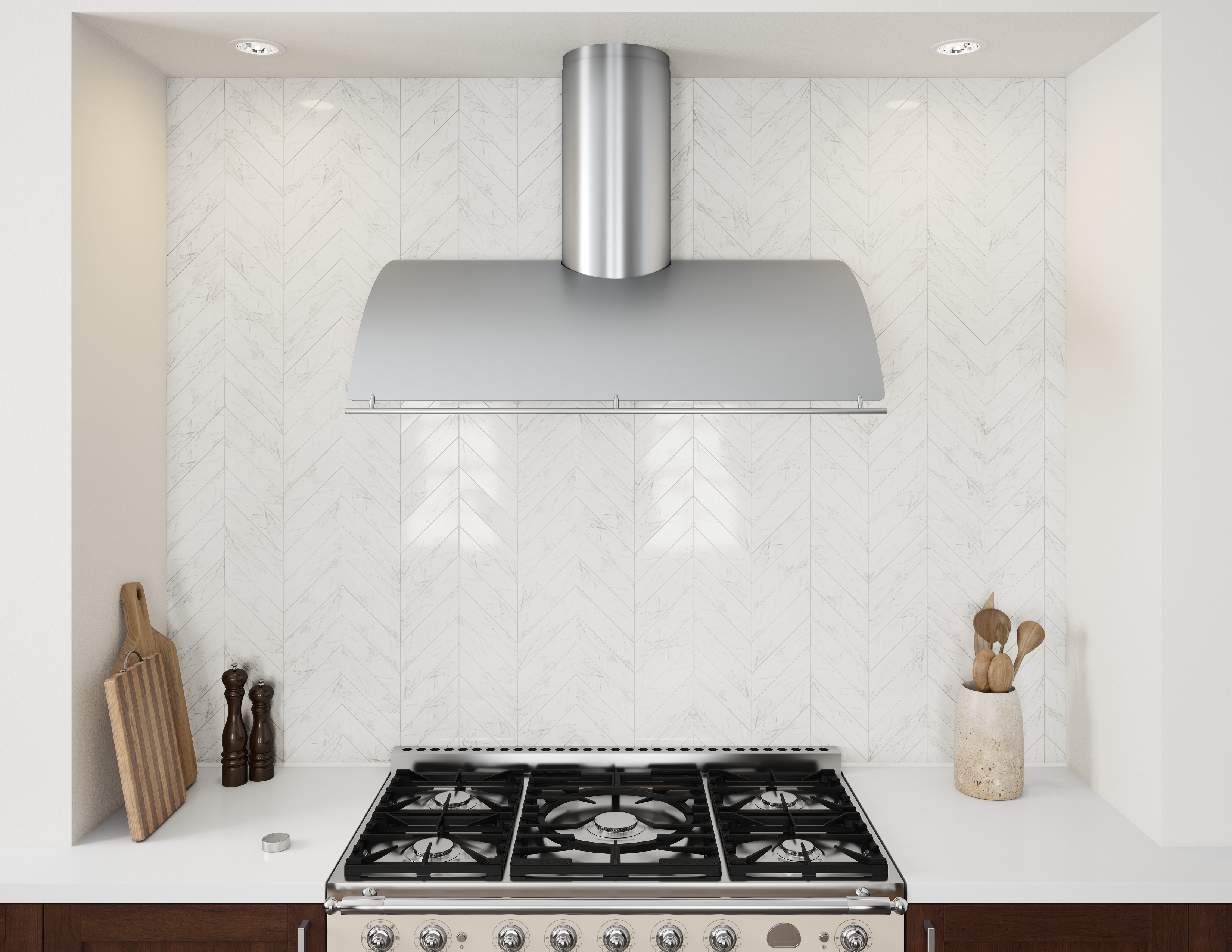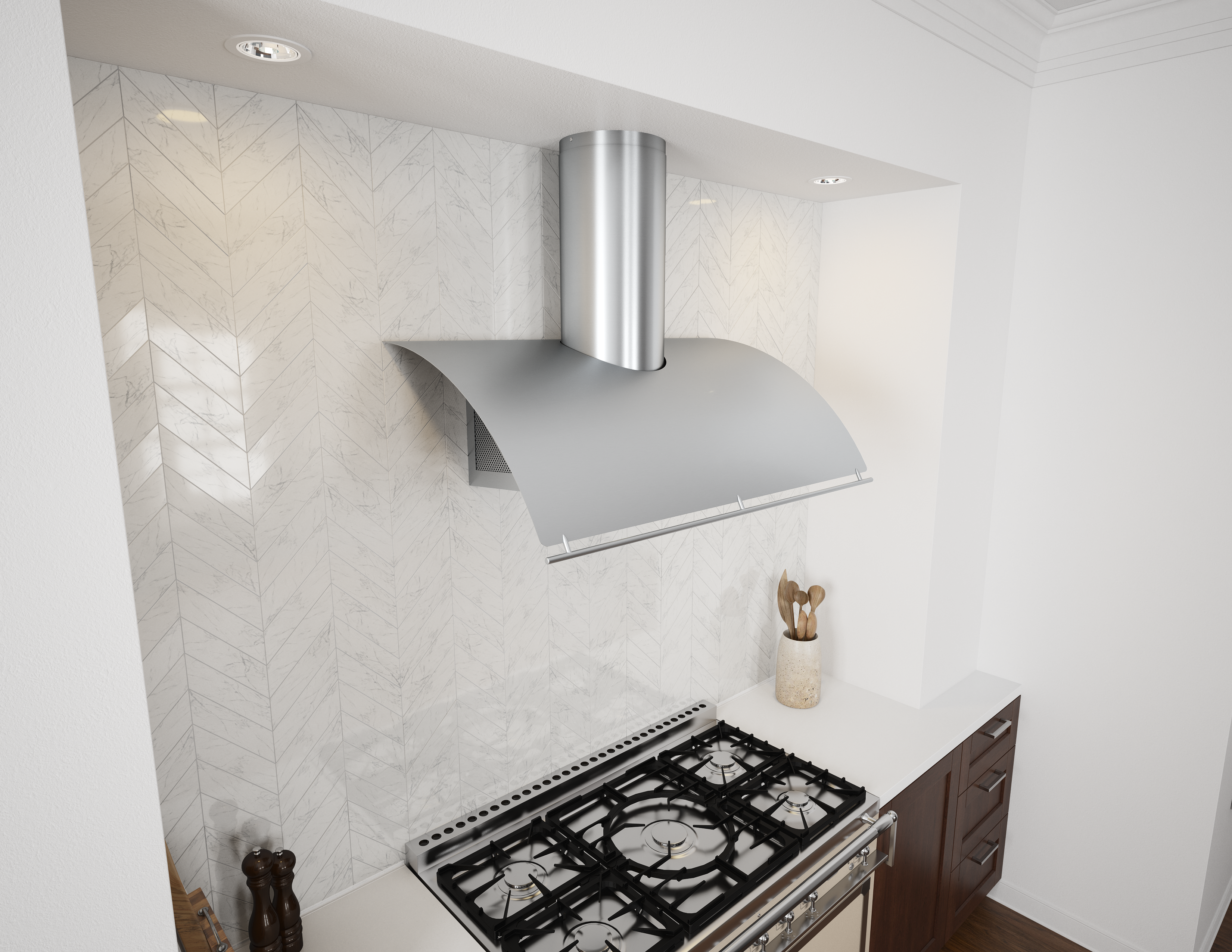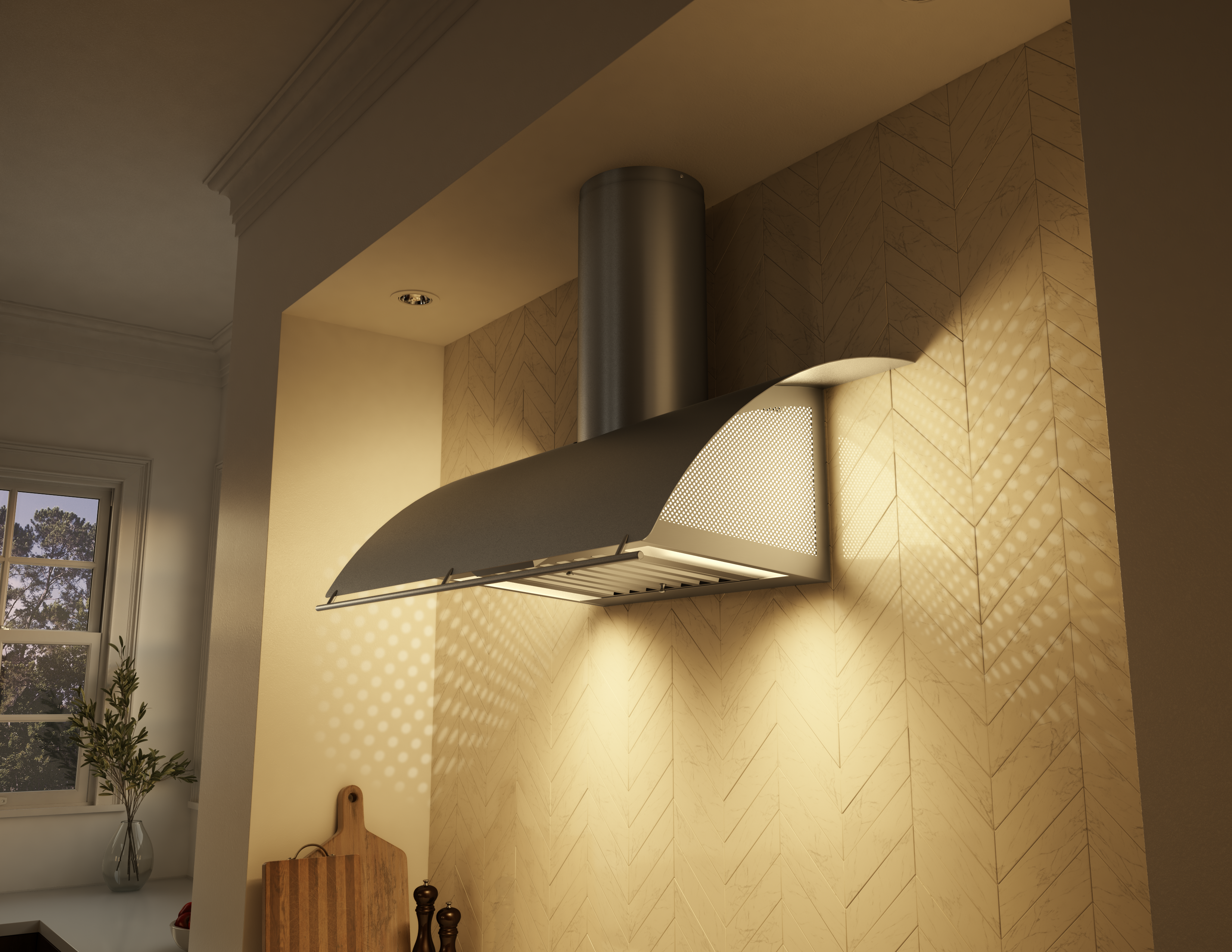 The graceful, sweeping hood of the Okeanito balances softness and fluidity with cool linear elements to create a timeless design. Perforated side panels allow the Okeanito to radiate gentle ambient light, infusing its surroundings with a sense of grace and calm. Now featuring the most advanced LumiLight LED lighting and an optional wireless RF remote control, and available in our classic stainless steel and new brushed gold.