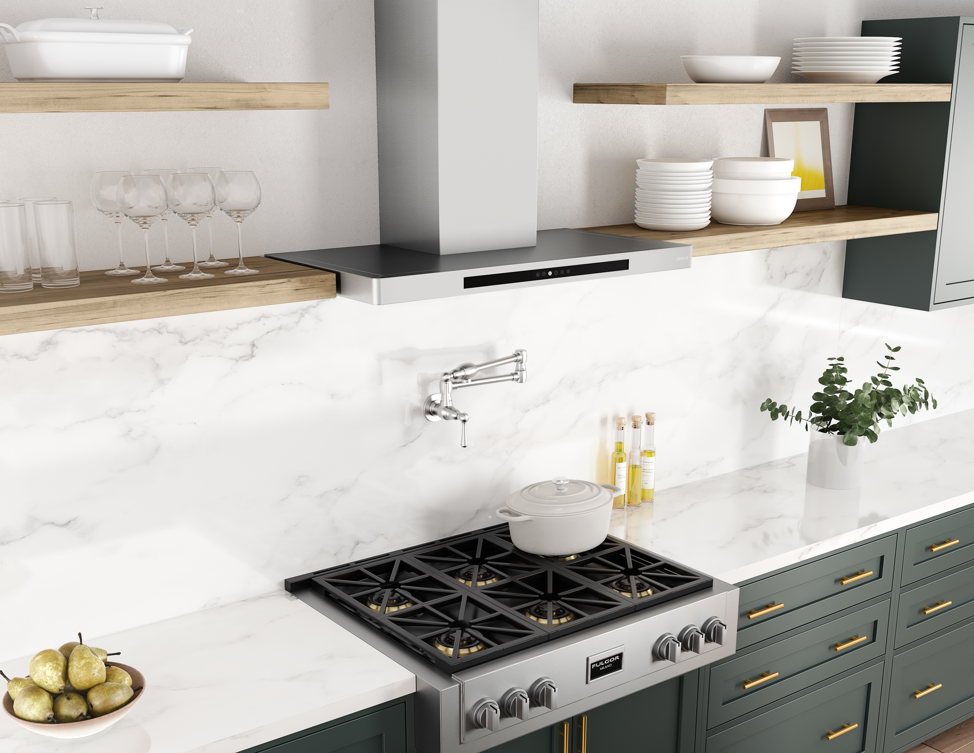 Low profile, curvy good looks and matchless power add up to a hood that’s at home in any kitchen. The cutting-edge Perimeter Aspiration System will increase air velocity and improve the capture of cooking contaminants for a cleaner cooking experience. Featuring Invisible Touch Controls that stay invisible until you need them, multiple blower options and illuminated with top-of-the-line LED lighting, the Vista Wall promises to seriously up your chef game. Optional remote control is available as an accessory.
