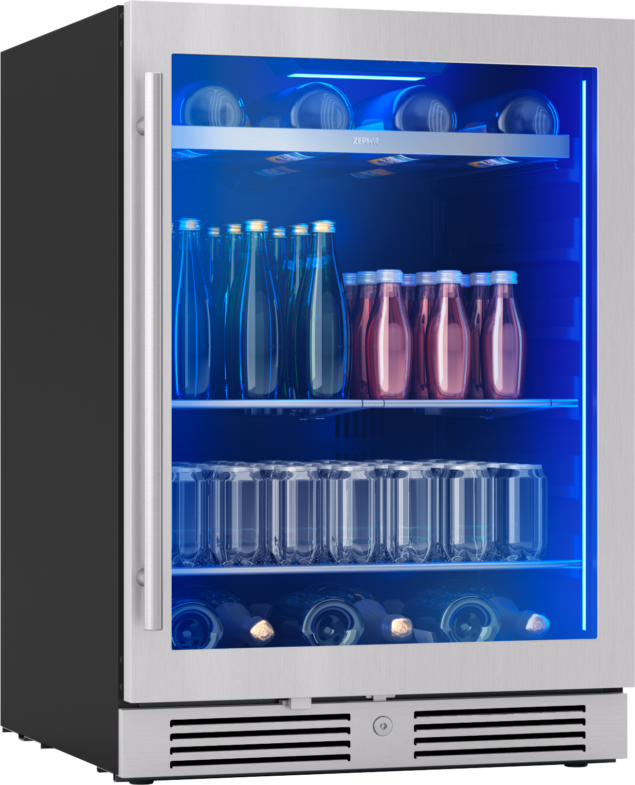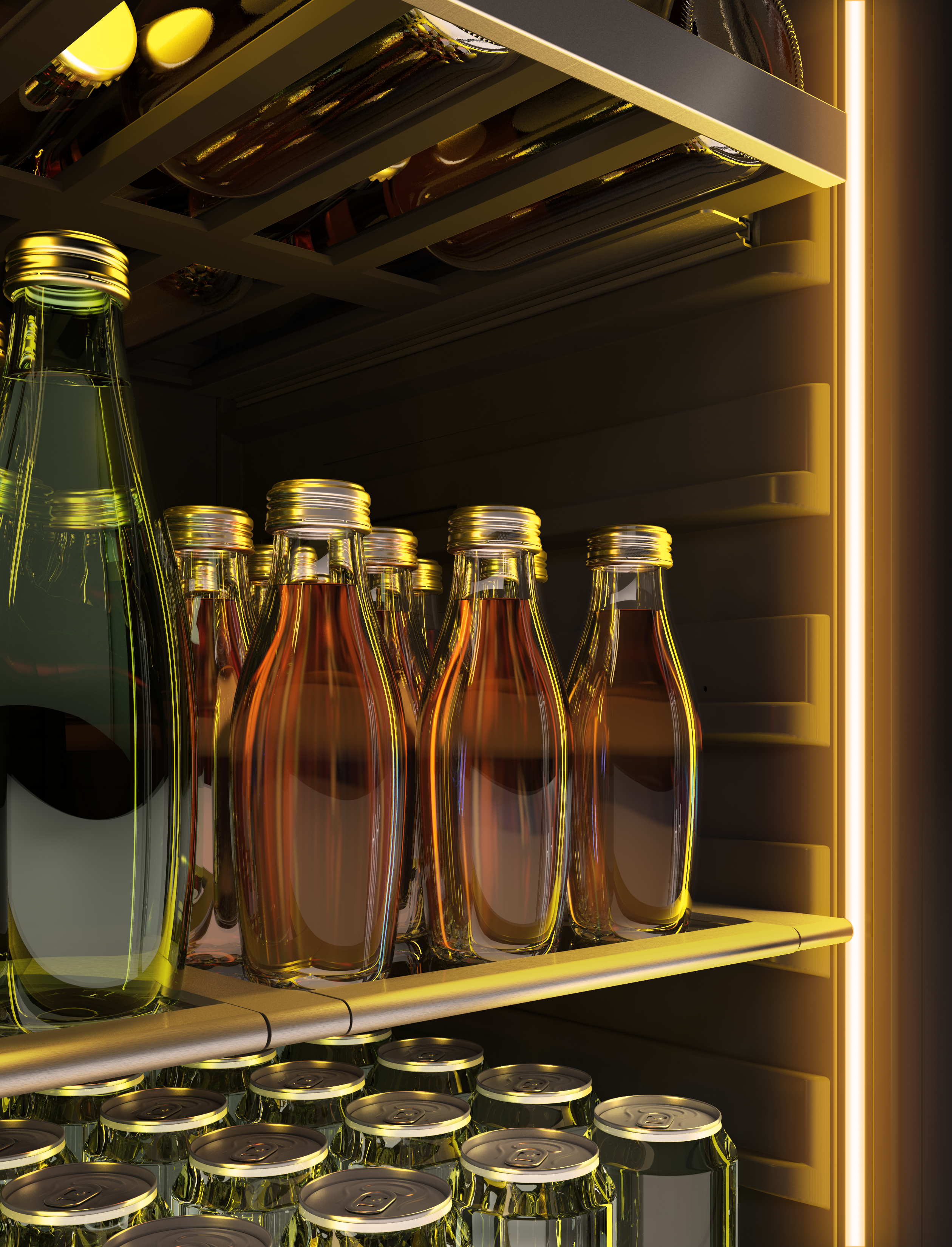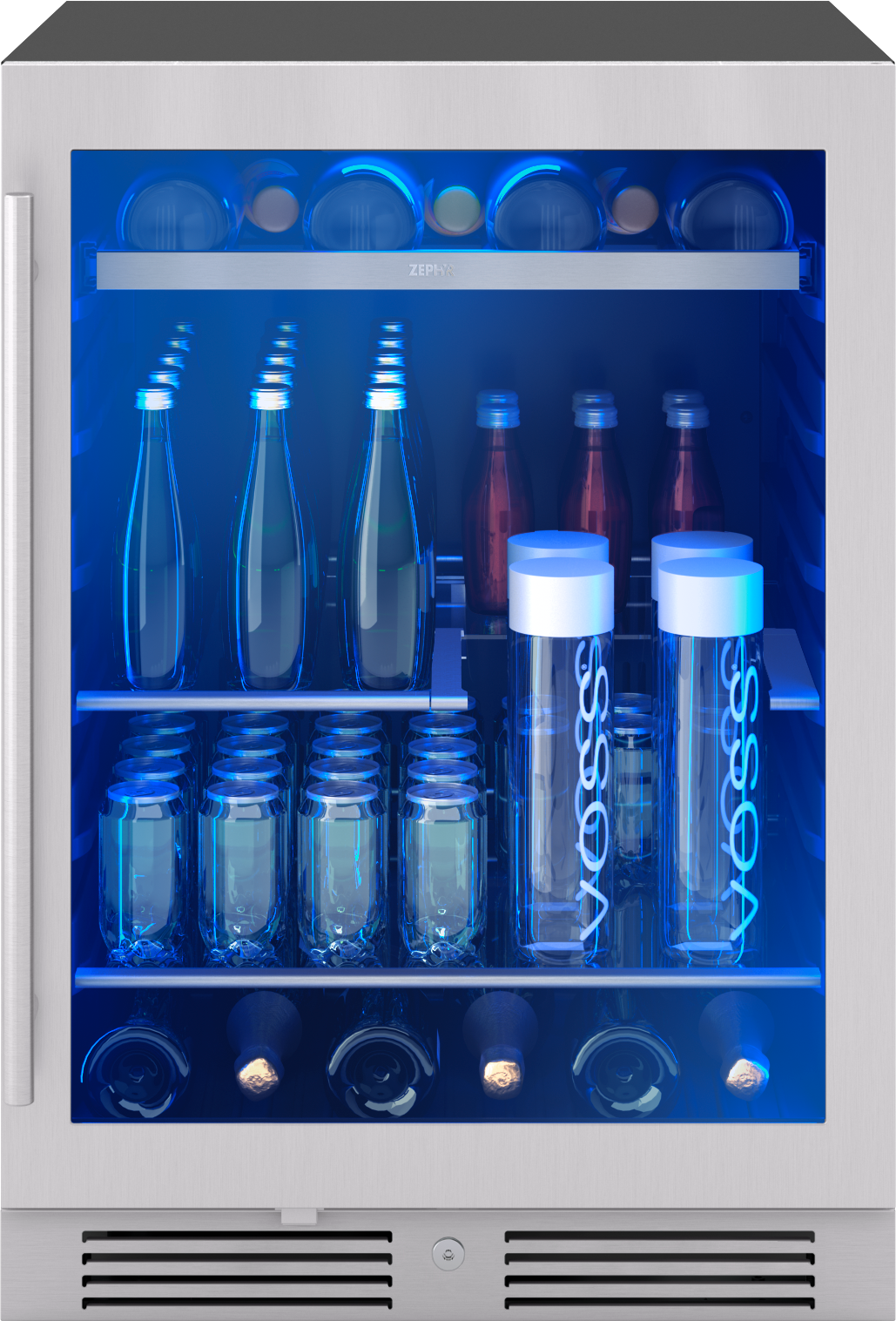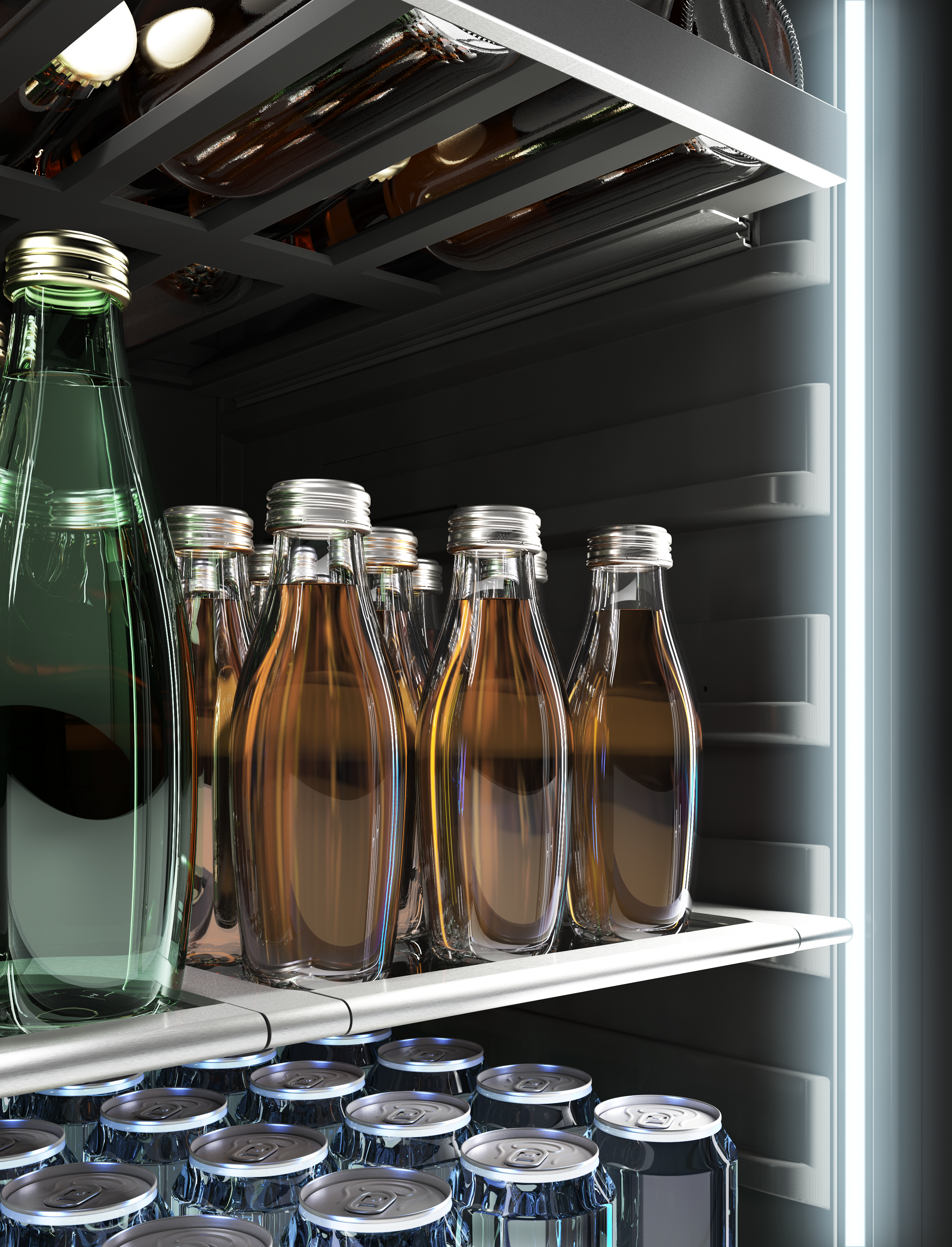 Our Presrv™ Beverage Cooler is as chill as it looks and is always ready to party. Featuring a Full-Extension Wood Rack to hold your favorite wine and craft brew and a convenient retractable glass quarter-shelf that gives you the flexibility to display taller bottles such as water, 2-liter bottles of soda, or champagne. New enhancements include mood-setting LED light strips in three colors and four light levels and an updated kickplate with lock.