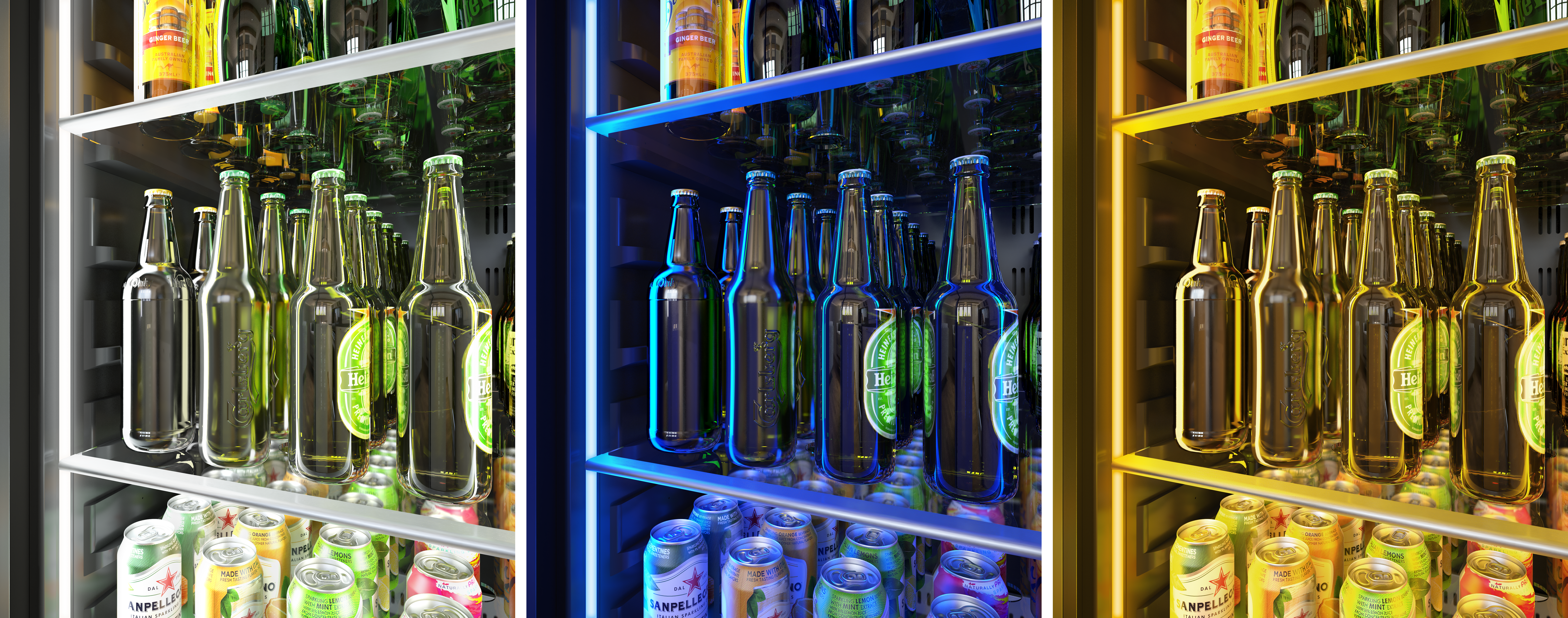 Store everyone’s favorites in this stainless steel Full Size Beverage Cooler. Whether you’re hosting a crowd or just chilling with the fam, features like a stainless steel, Full-Extension Rollout Bin for easy access to drinks, a Full-Extension Wood Rack for wine and beer, vertical LED light strips in three colors and four light levels, an illuminated control panel, and an updated kickplate with built-in lock mean this cooler is ready to hang. Also boasts an auto-illuminating function that sets the lighting to the highest brightness level when the door opens for greater visibility.