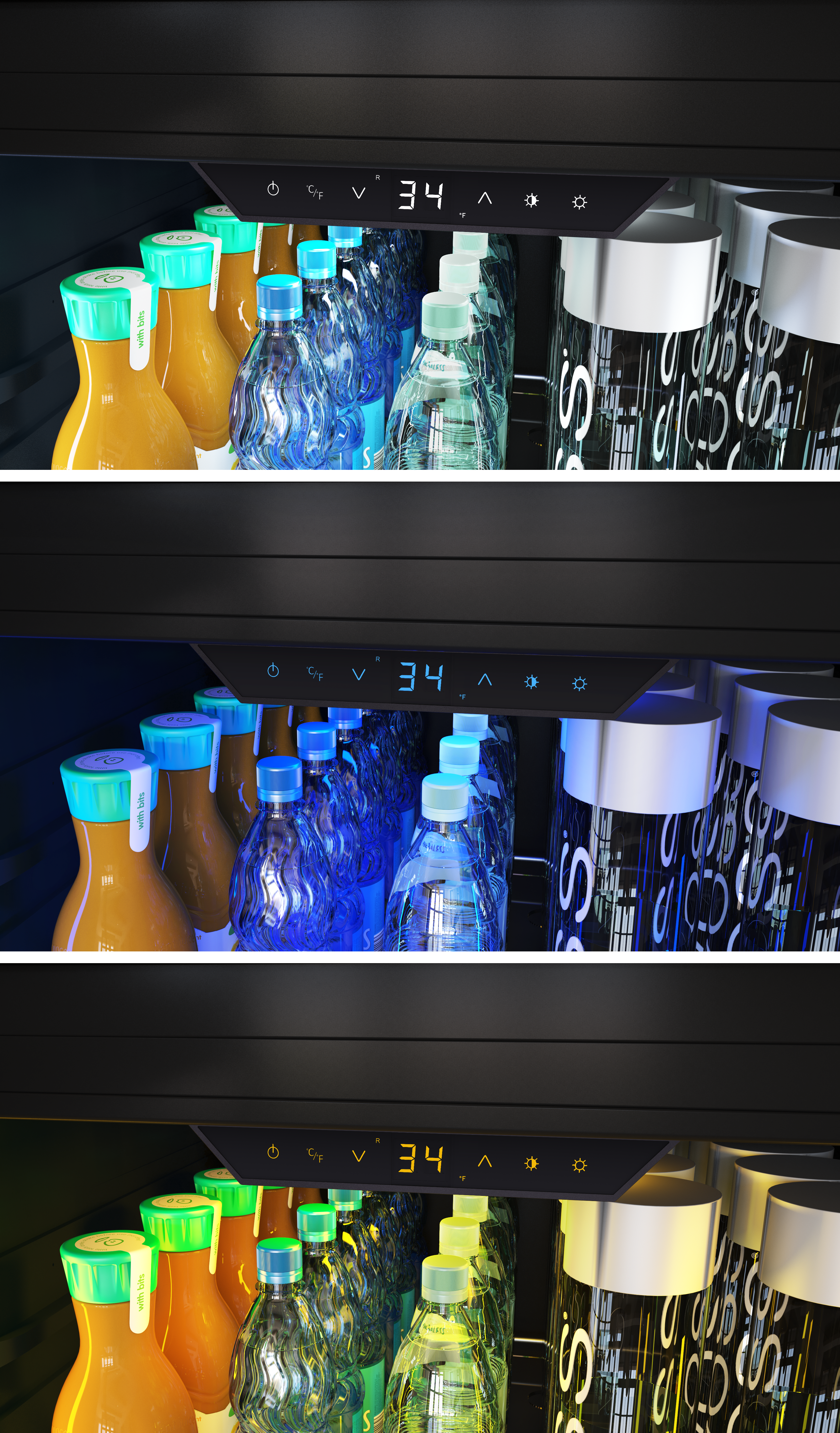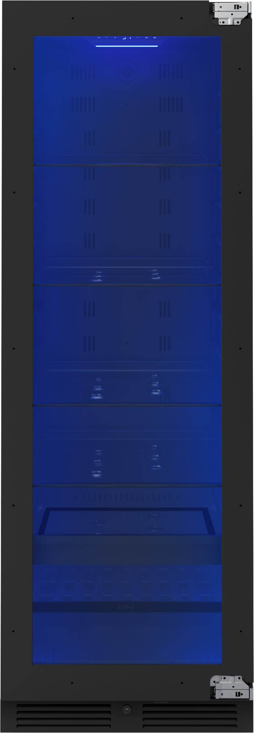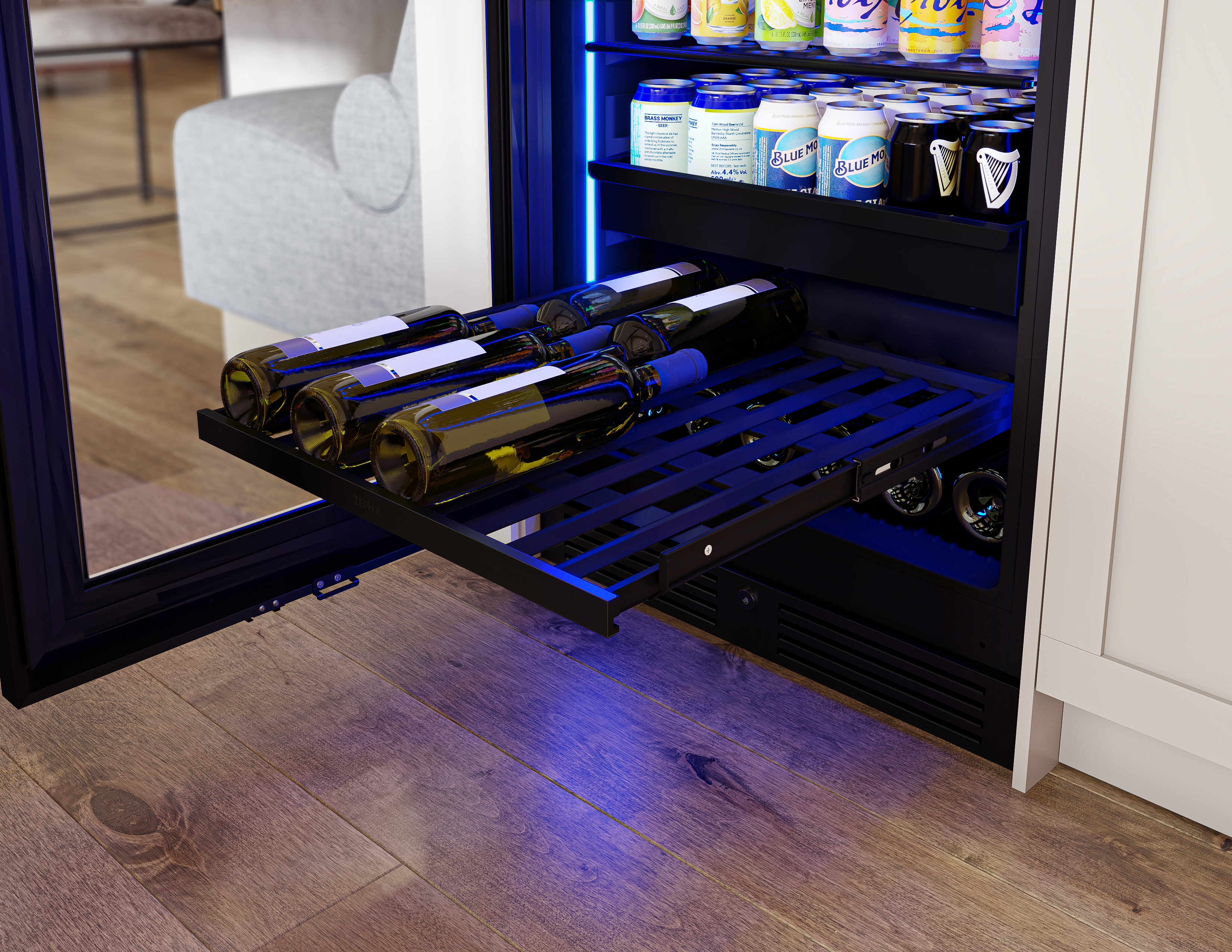 With tons of entertaining versatility and the ability to beautifully harmonize with your cabinetry, this Full Size Panel Ready Beverage Cooler stores your favorite wines and any other beverages with ease. Featuring Hettich™ articulating hinges, Full-Extension Wood Rack, Full-Extension Rollout Bin, vertical LED light strips in three colors and four light levels, an illuminated control panel, and an updated kickplate with built-in lock. Also boasts an auto-illuminating function that sets the lighting to the highest brightness level when the door opens for greater visibility. Door handle sold separately, and wood panel not included.