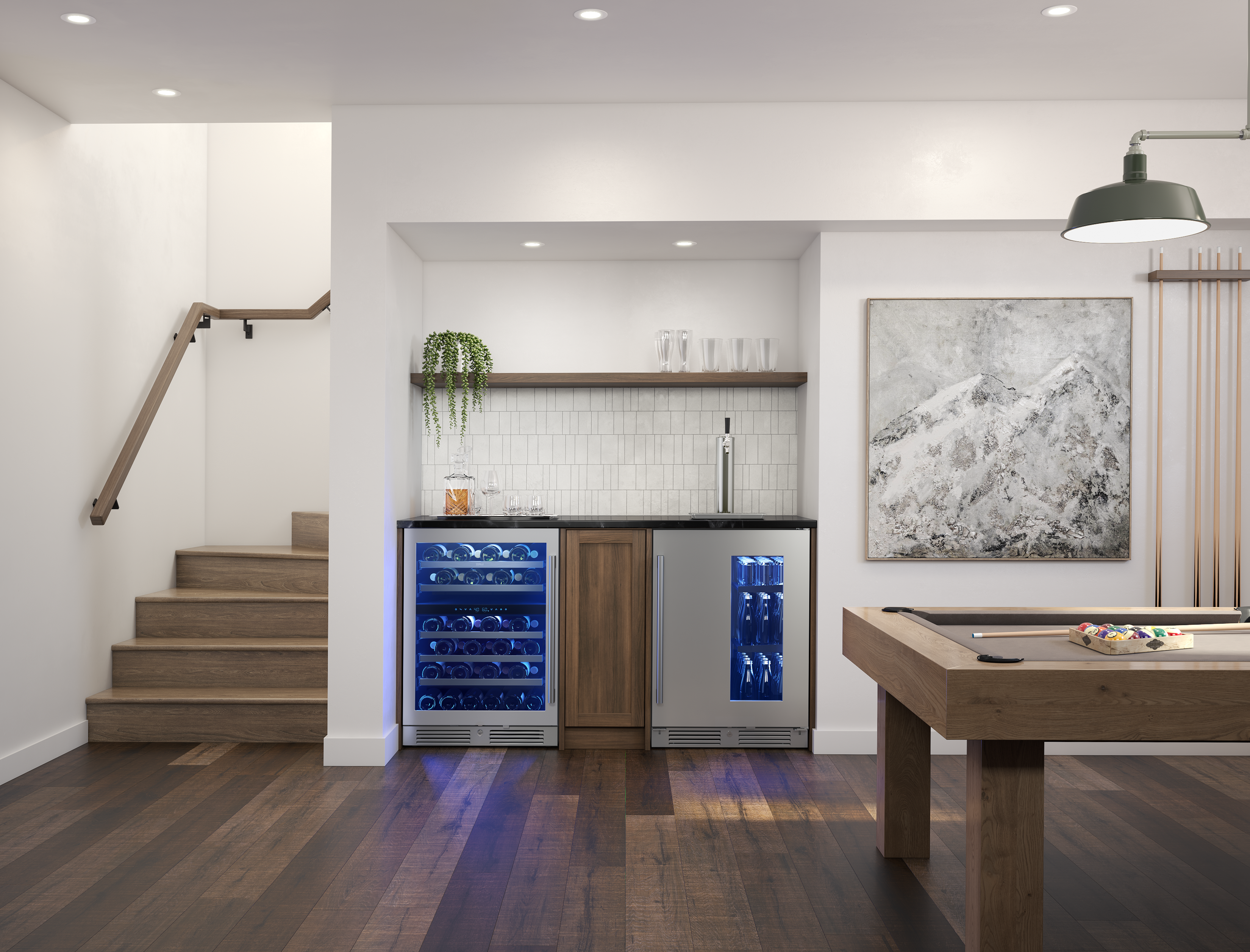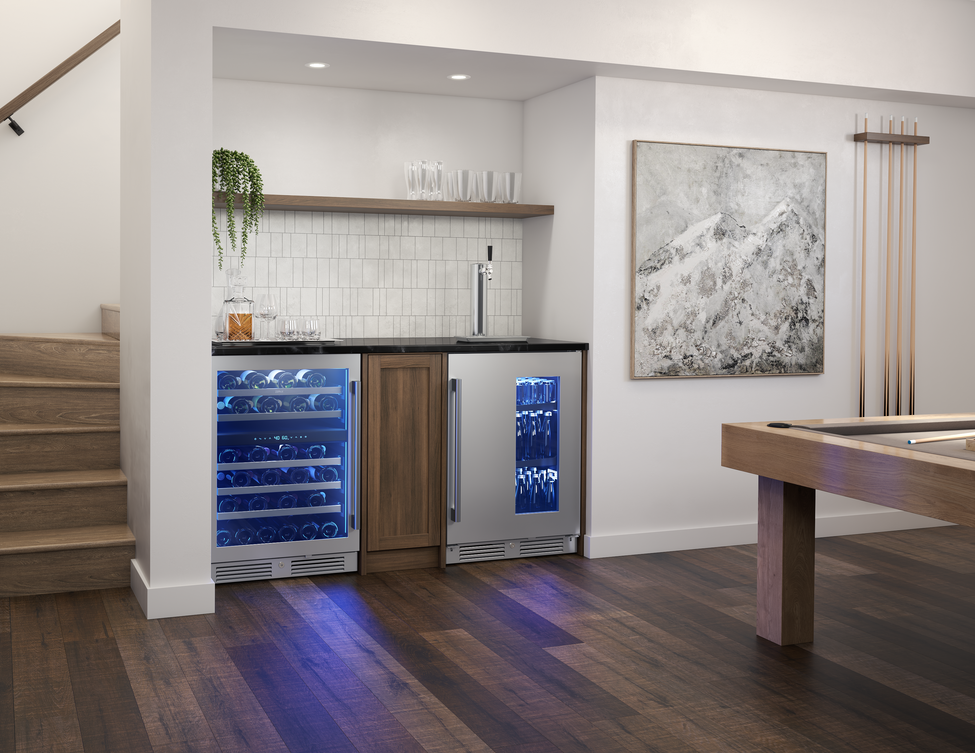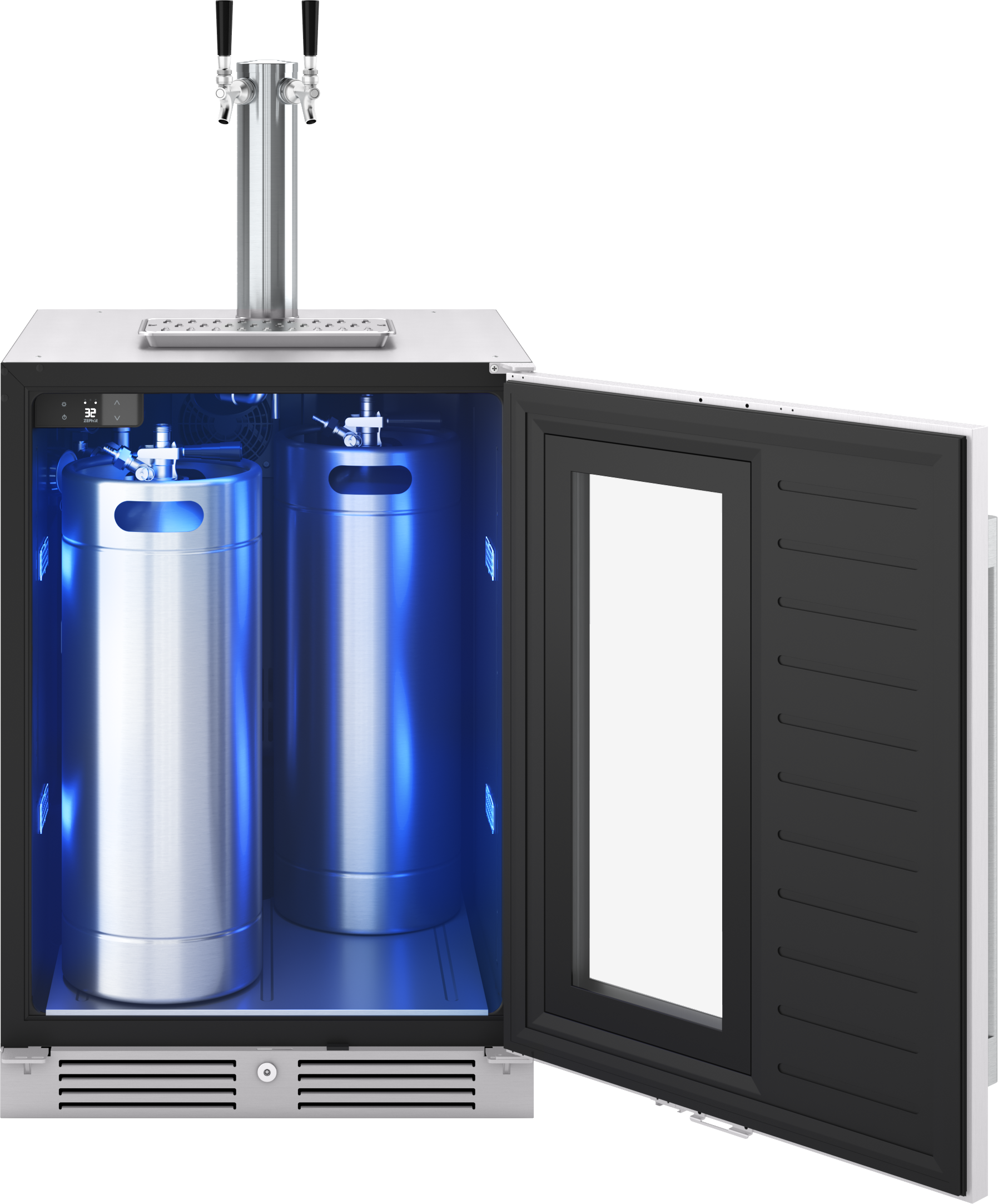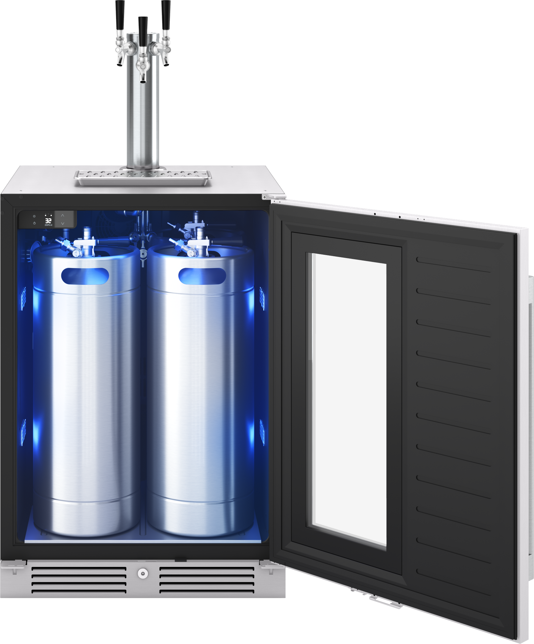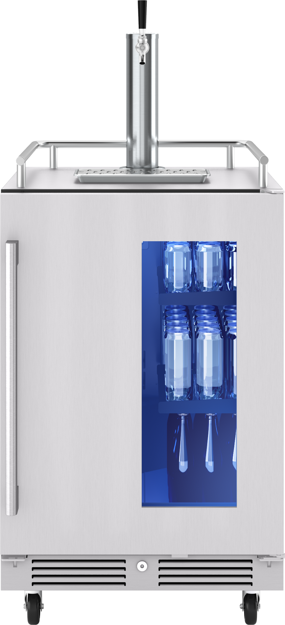 Be ready to serve up your best parties yet, with a kegerator and beverage cooler that is versatile enough for even the most creative of hosts. This sleek, stainless steel, hybrid kegerator can accommodate multiple keg configurations — and easily converts to a beverage cooler with a glass display window when a keg is not installed. Purchase one of our single, double, or triple tap kits (sold separately) to complete your dream configuration. Featuring a pro handle, kickplate with lock, optional casters, and guardrail, plus mood-enhancing, 3-Color LED lighting.