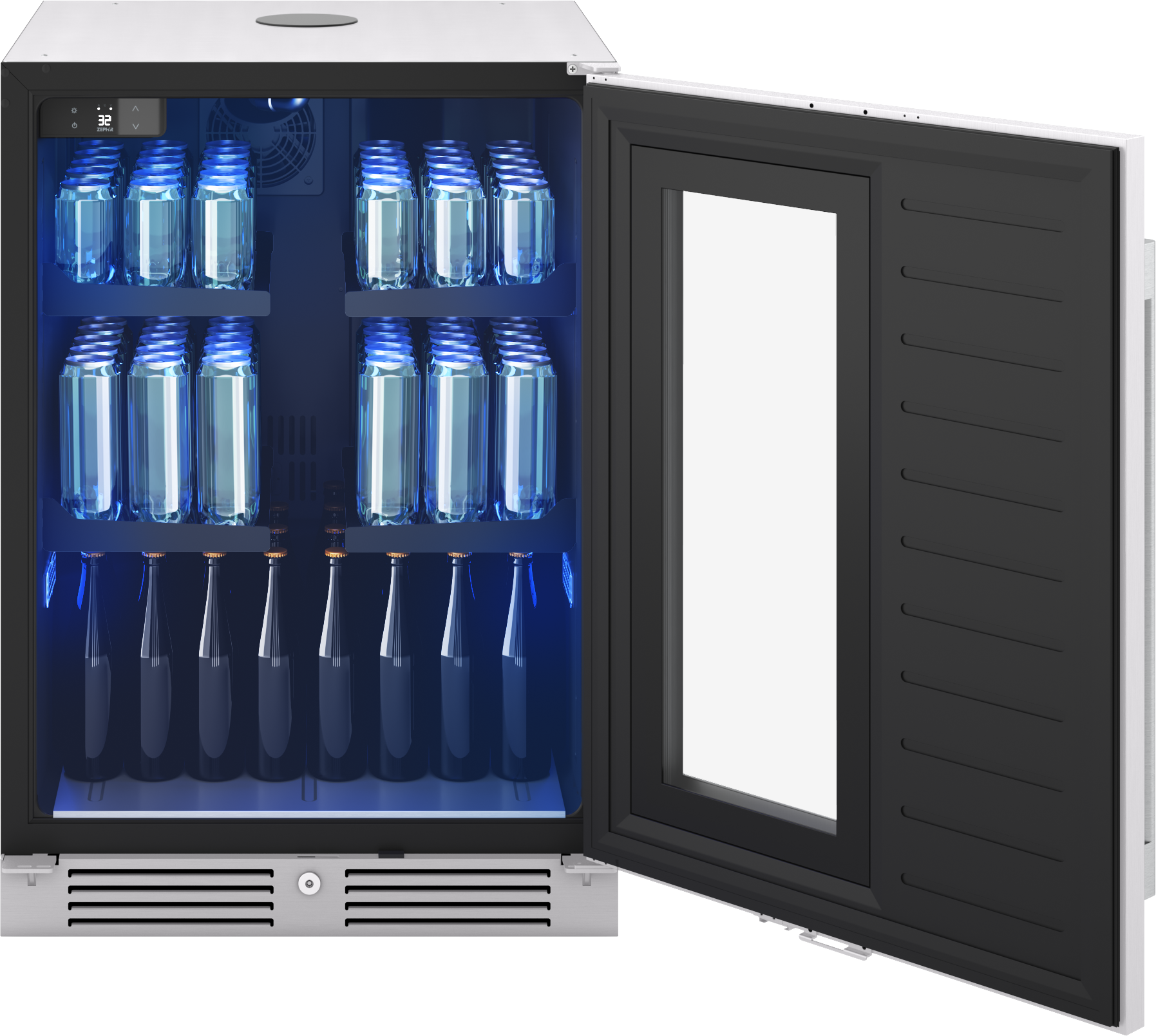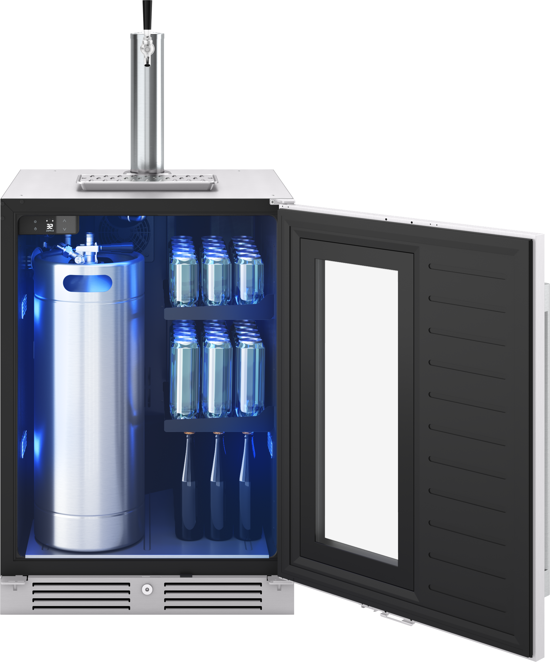 Presrv Kegerator & Beverage Cooler, 24in Under Cabinet, SS+Glass, Reverse Door, 1 Zone