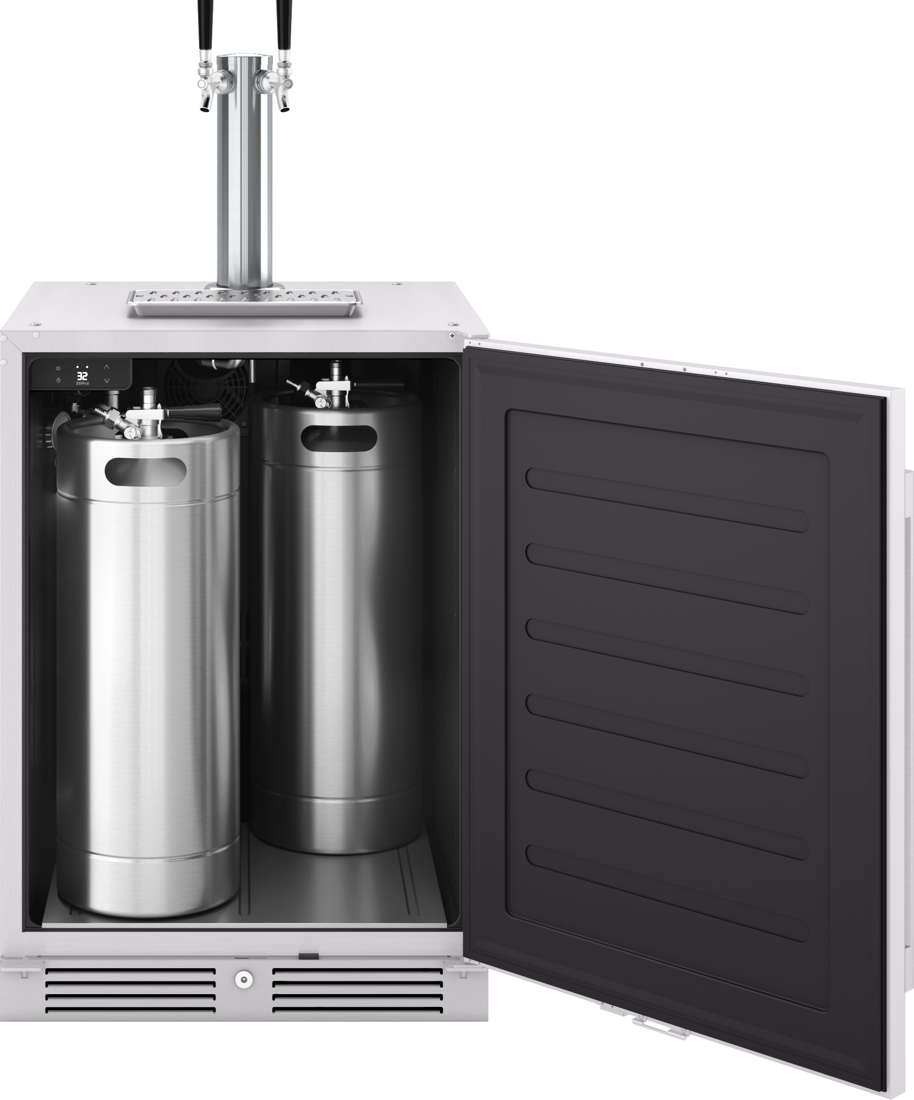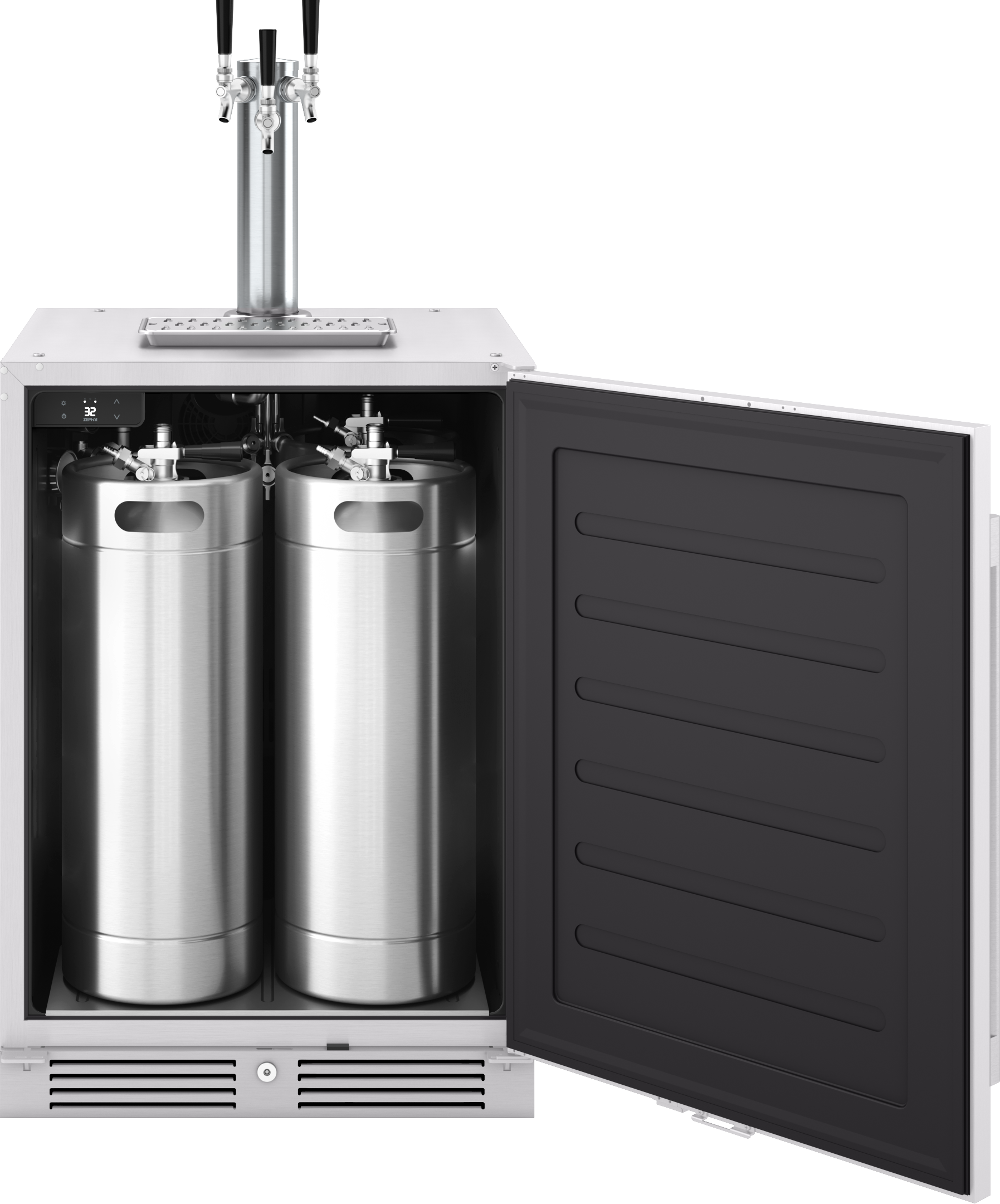 Your outdoor entertaining just got upgraded with a kegerator and beverage cooler that is versatile enough for even the most creative of hosts. This corrosion-resistant, stainless steel, hybrid kegerator can accommodate multiple keg configurations and easily functions as a beverage cooler when a keg is not installed. Purchase one of our single, double, or triple tap kits (sold separately) to complete your dream configuration. Optional accessories include casters and a drink guardrail for use in freestanding installations. Also certified for indoor use.