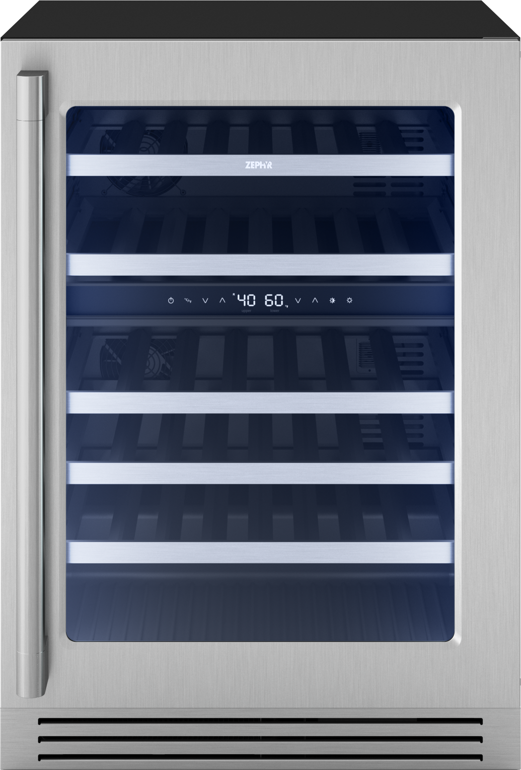 Presrv Pro Wine Cooler, 24in Under Cabinet, SS+Glass, Reverse Door, 2 Zone