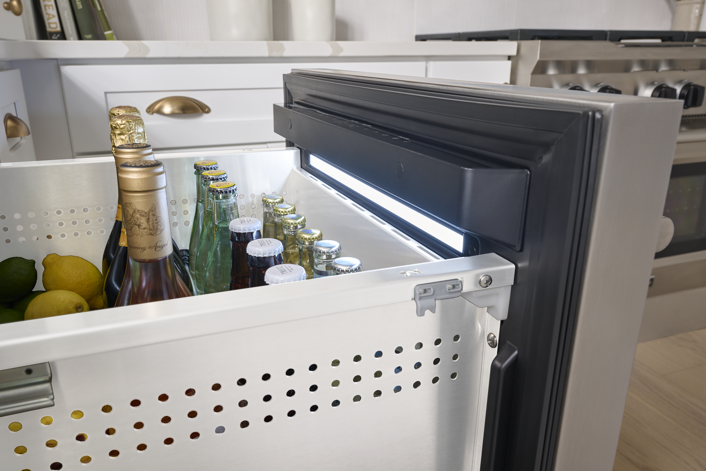 From snacks for the kids to the freshest produce to party-ready food and drinks, these stylish under-counter Single Zone Refrigerator Drawers give you additional cold storage right where you need it. Loaded with features like Quick Chill to instantly lower overall refrigerator temperature; handy temperature presets; PreciseTemp™ temperature control for maintaining accurate temperatures; Full-Extension, Soft-Close Drawers; and a sleek stainless steel exterior.