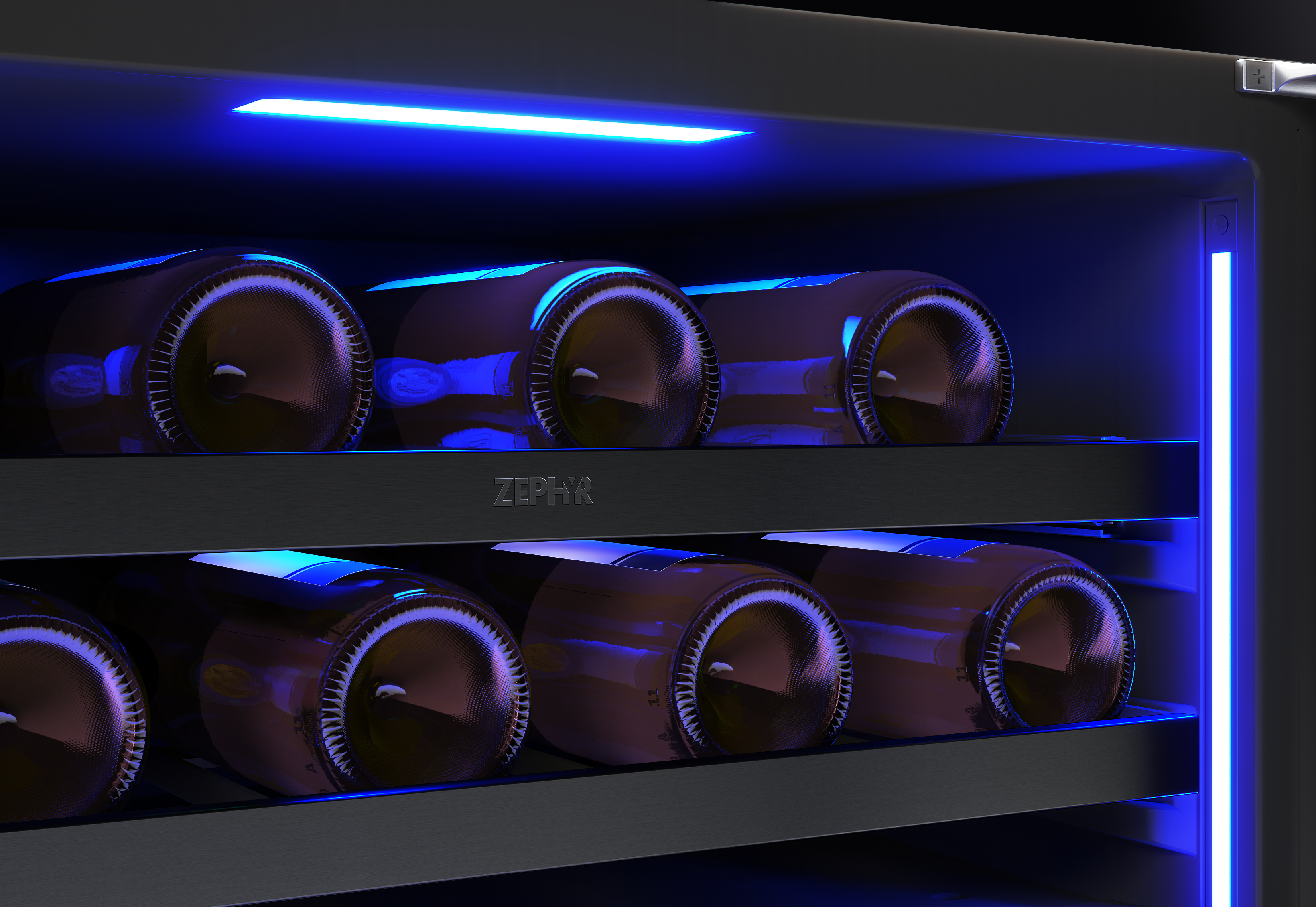 For wines that are twice as nice — and no limits on the guest list! — our Presrv™ Dual Zone Wine Cooler in black stainless steel means never having to choose between white or red, and always being ready to pour anyone’s favorite. This large capacity cooler boasts two distinct temperature zones with PreciseTemp™ temperature control and Active Cooling Technology to ensure even cooling, along with loads of other features from Full-Extension Wood Racks to a Vibration Dampening System. Match the party’s vibe with an illuminated control panel and new vertical LED light strips in three colors and four light levels.