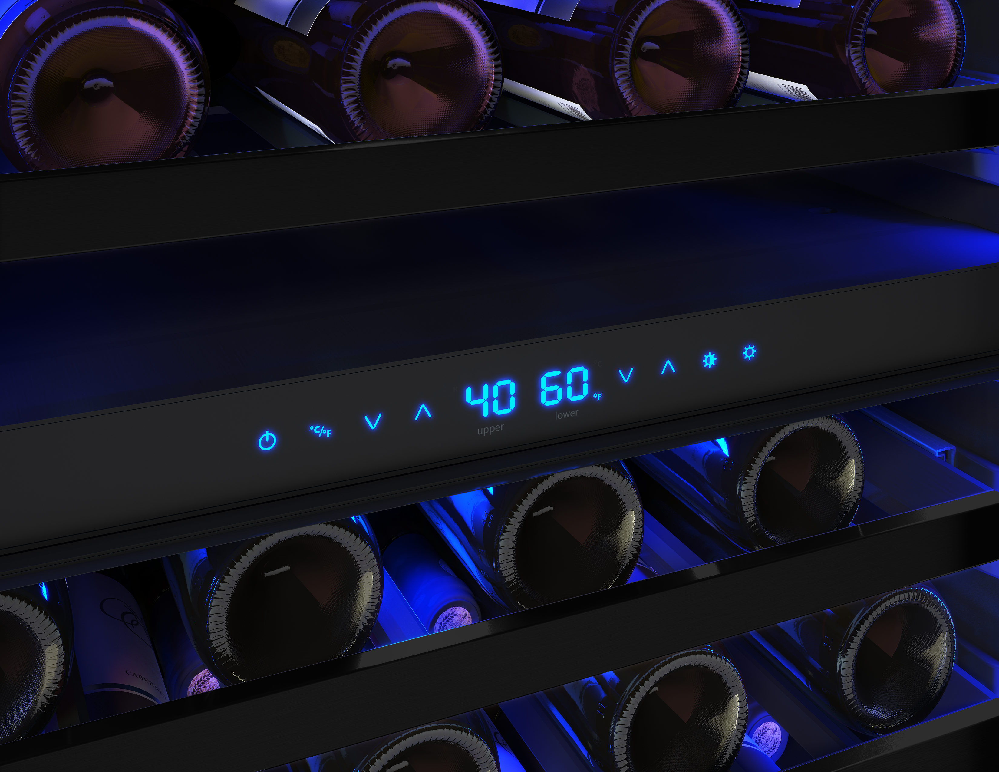 Harmoniously integrate the Presrv™ Panel Ready Dual Zone Wine Cooler into any entertaining space and match your cabinetry with ease. Two temperature zones with PreciseTemp™ temperature control mean never having to choose between white or red, and always being ready to pour anyone’s favorite. This large capacity cooler features Active Cooling Technology to ensure even cooling, and it’s easy to enhance the party’s vibe with an illuminated control panel and new vertical LED light strips in three colors and four light levels. Door handle sold separately, and wood panel not included.