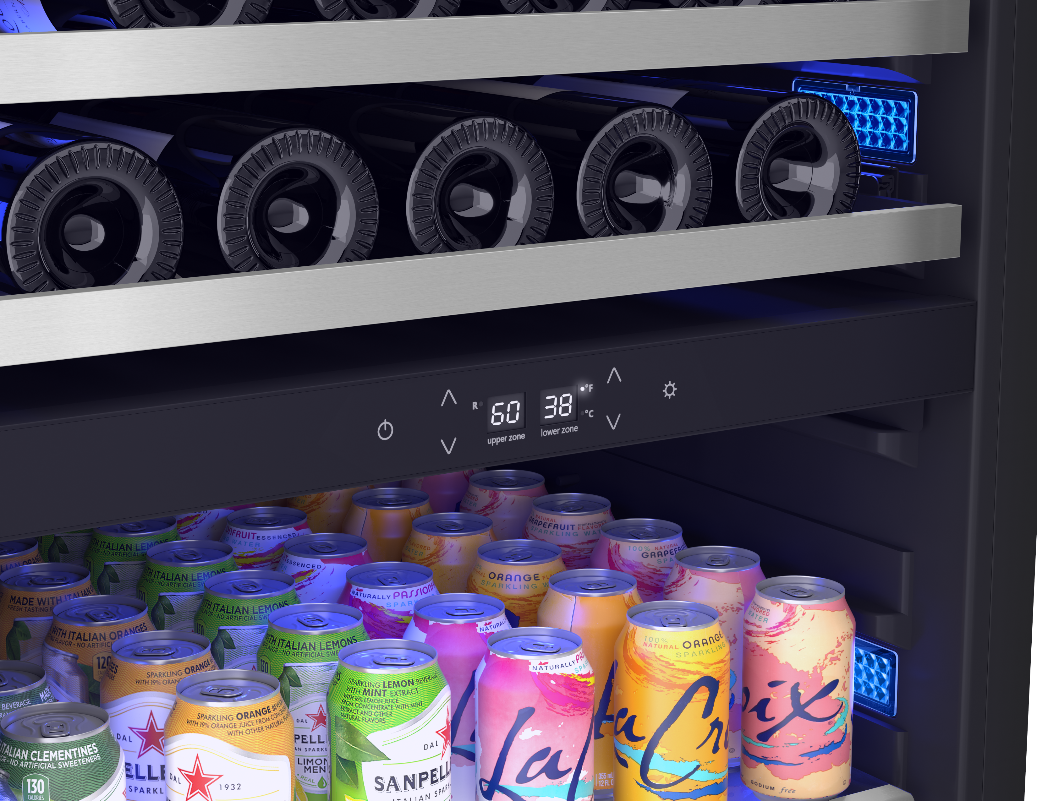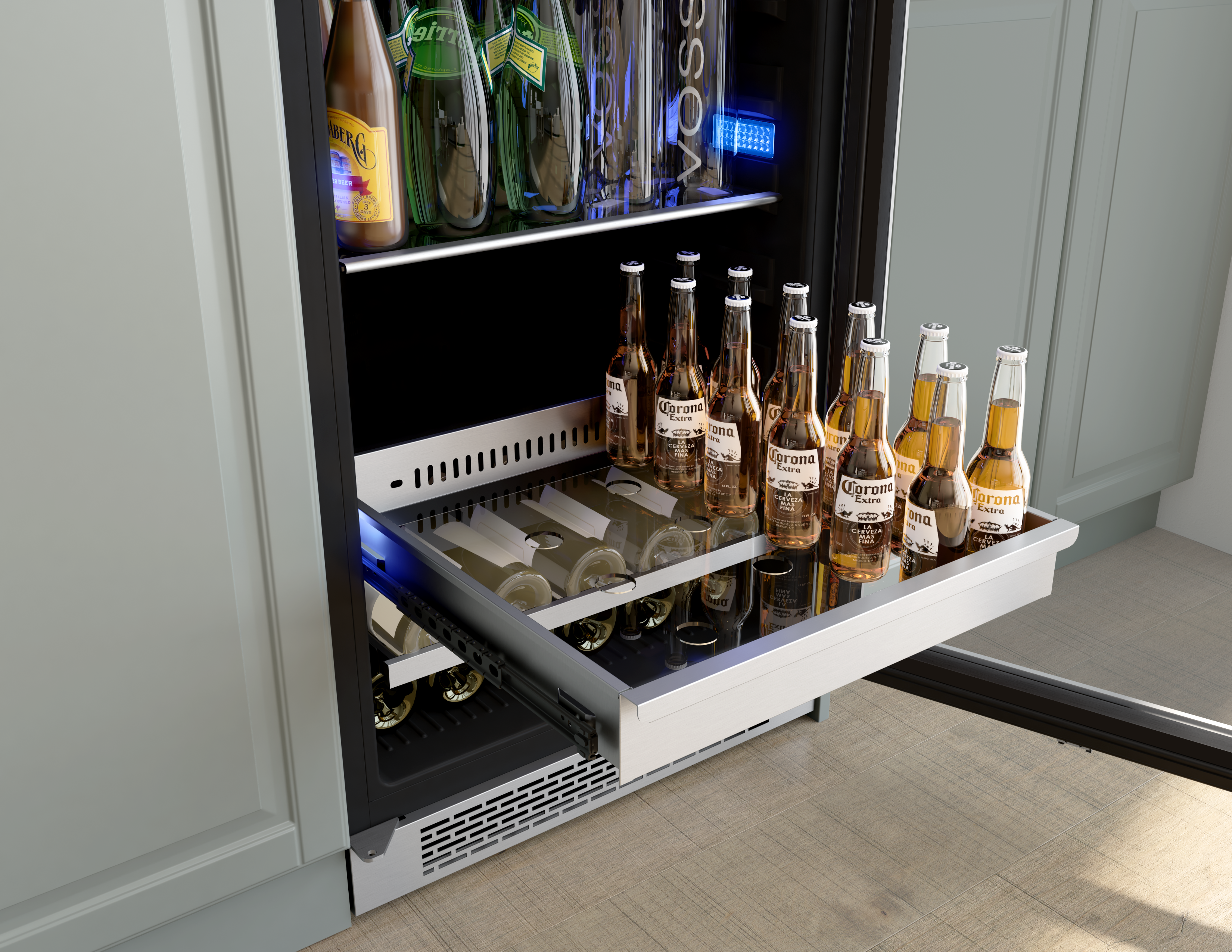 It’s easy to be the life of the party with our Full Size Wine & Beverage Cooler. It’s the best of both worlds, half wine cooler – half beverage cooler. Perfect whether you’re hosting a cocktail party or an after school study session. Plus, features like a stainless steel, Full-Extension Rollout Bin for easy access to chilled beverages and wine, Full-Extension Wood Racks for storage, and Active Cooling Technology mean this cooler is ready to help with the hosting duties, no matter who’s on the guest list.