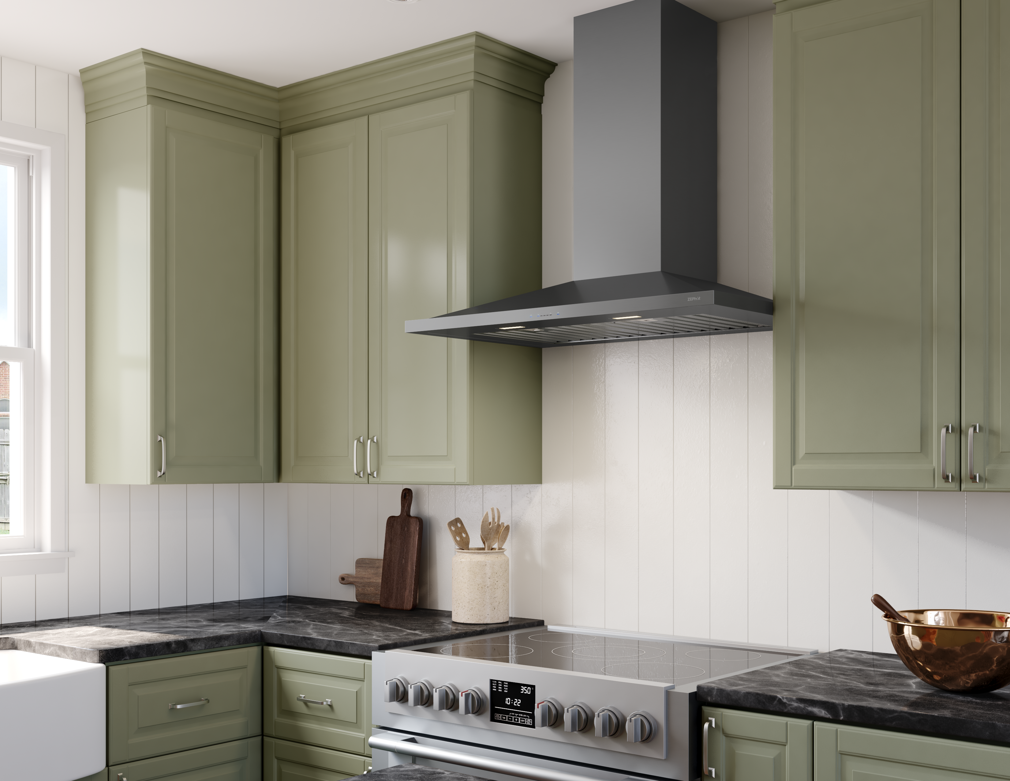 Anzio, a low-profile, chimney-style range hood that will add style and value to any kitchen. Available in stainless steel and black stainless steel finishes for improved durability and easy cleaning. Complete with a 600-CFM blower, ICON Touch® controls, LumiLight LED lighting and our exclusive Airflow Control Technology™ (ACT™). Now available with an optional ADA-compliant remote control.