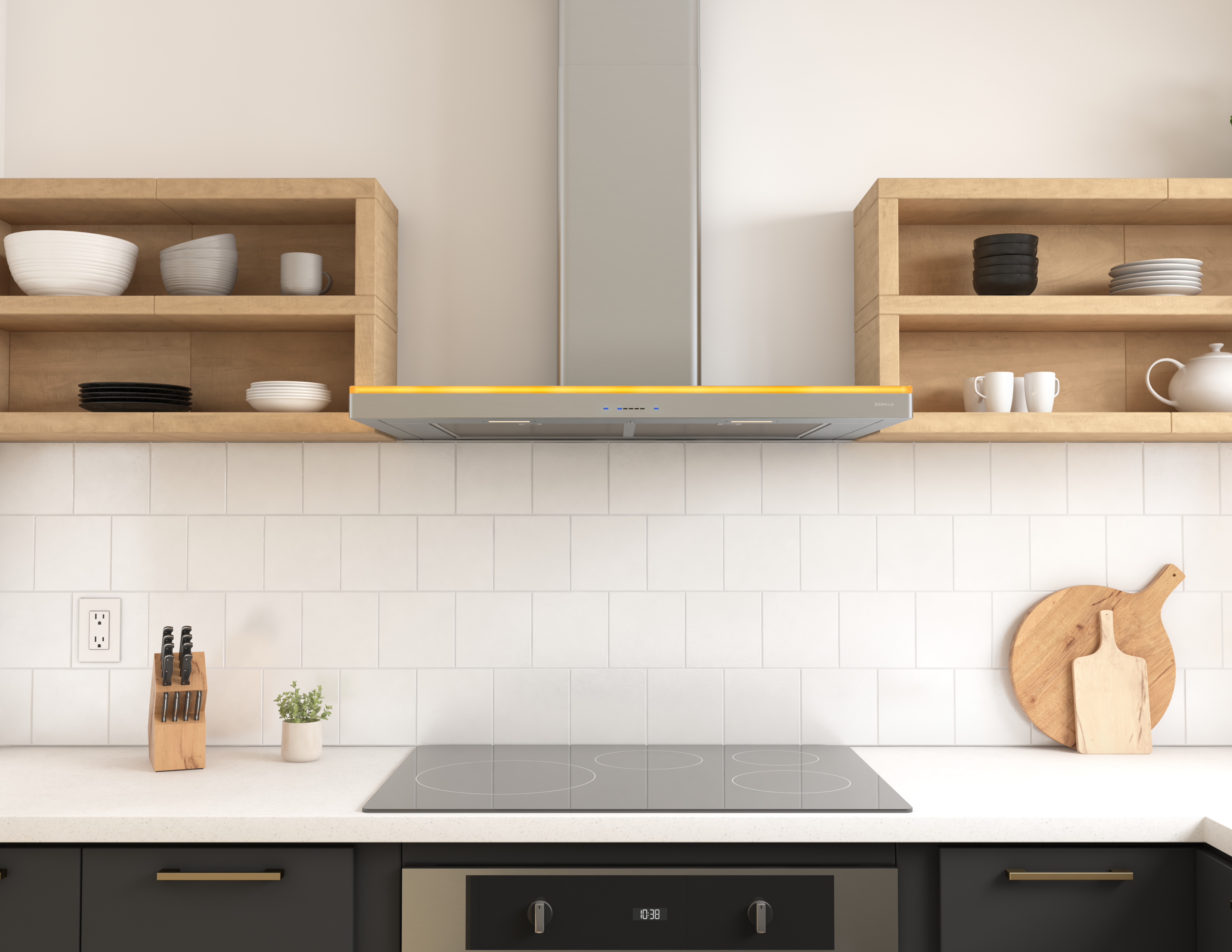 Boasting an elegant slice of sleek stainless steel married with the subtle glamor of ambient lighting in Cloud White, Deep Blue and Amber, the Lucé is the (gorgeous) future of range hoods — here today. Featuring Airflow Control Technology™ (ACT™), LumiLight LED lighting, ICON Touch® controls and a versatile recirculating option. Now available with an optional ADA-compliant remote control.