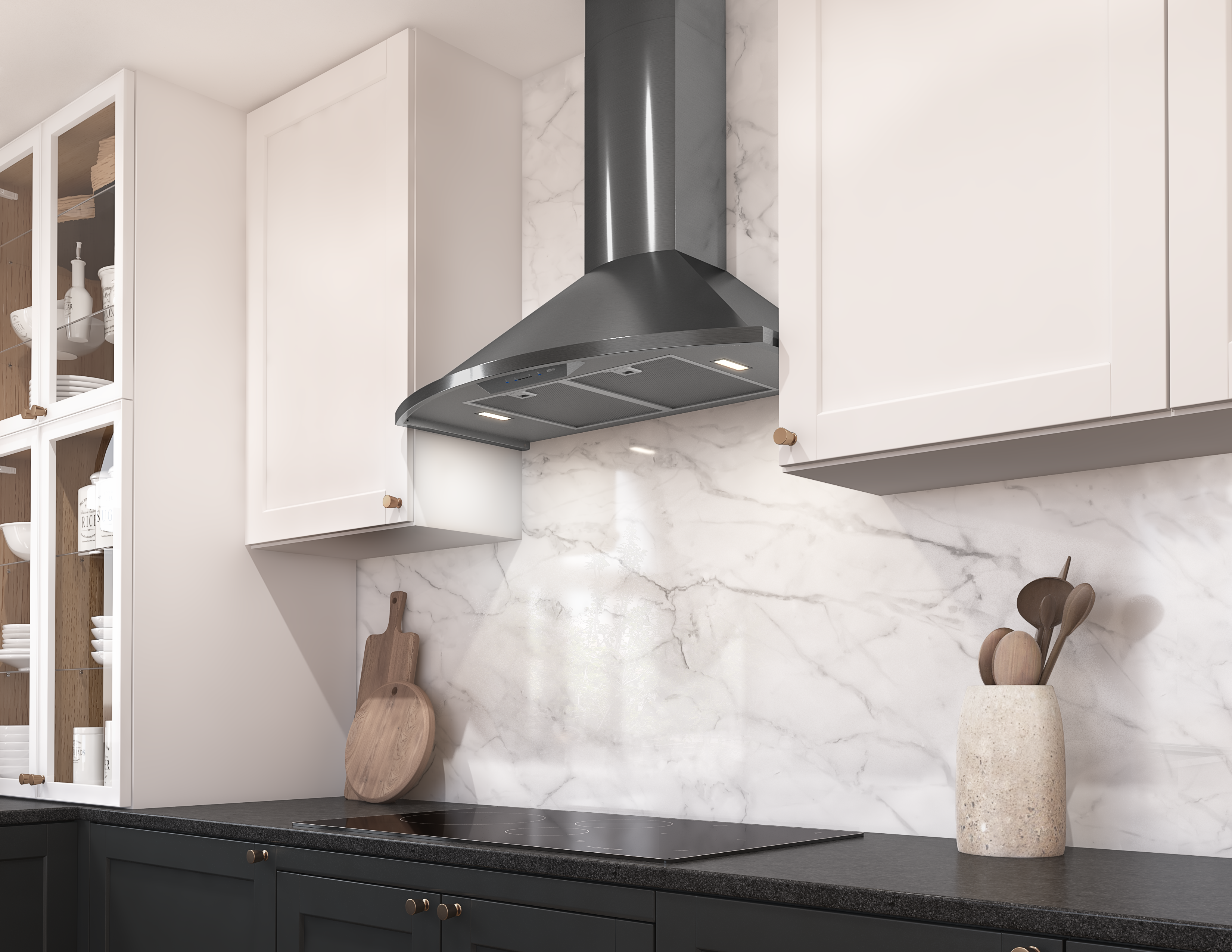 Savona’s semi-circular surfaces accentuate this range hood’s European design with delicate reflections of light and shadows. Available in stainless steel, powder-coated black, white, and the sleek alternative to stainless steel: black stainless steel. Savona features a robust 600-CFM blower, dual-level LumiLight LED lighting, ICON Touch® controls and our exclusive Airflow Control Technology (ACT™). Now available with an optional ADA-compliant remote control.